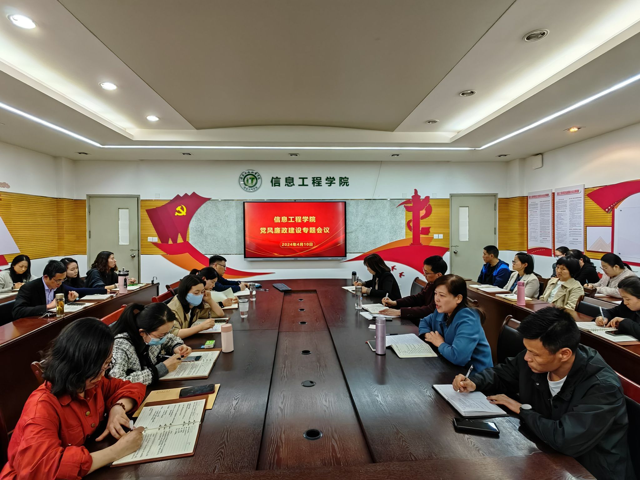 信息工程学院党总支始终把知纪守纪放在首位,4月10日召开了党风廉政建设专题会议,党总支书记张静雯向全体教职工作2023年度学院党风廉政建设专题工作总结并组织开展交流研讨会,在过去的一年里,学院党总支始终把管党治党主体责任放在心上、抓在手上、扛在肩上,认真落实一岗双责,签订党风廉政建设责任书,为学院健康稳定发展提供了坚强政治保障。