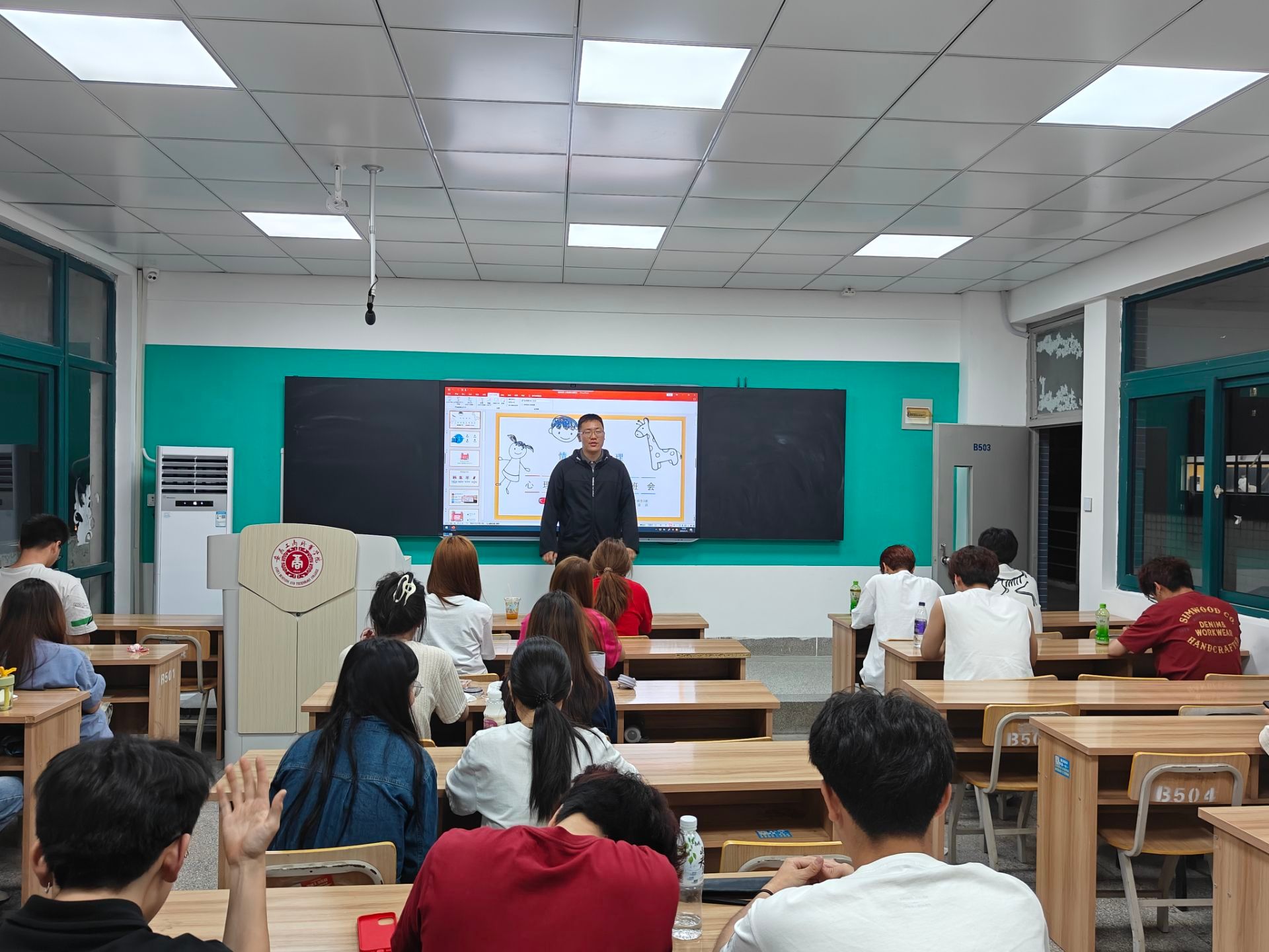 5月7日,在经济贸易学院412教室召开了心理健康月活动的启动仪式暨动员大会,会议由杨玉娇老师主持,各班心理委员和学生代表参加会议。