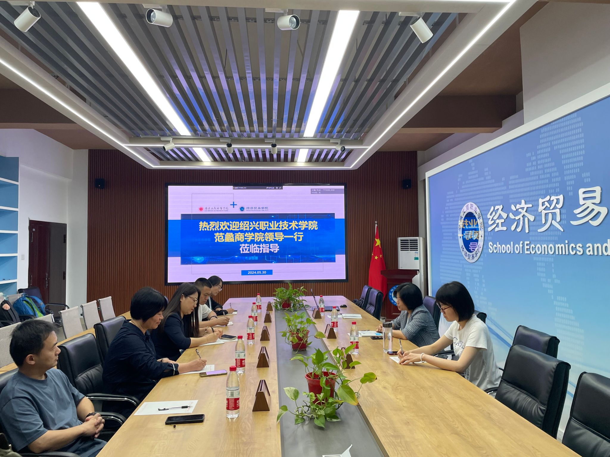 5月30日上午,绍兴职业技术学院范蠡商学院党院长朱伟芳一行5人来我校经济贸易学院考察交流跨境电子商务、国际经济与贸易、金融服务与管理等专业。经济贸易学院院长张颖、教务科王伟、跨境电商教研室骨干教师黄群群等参加了交流活动。