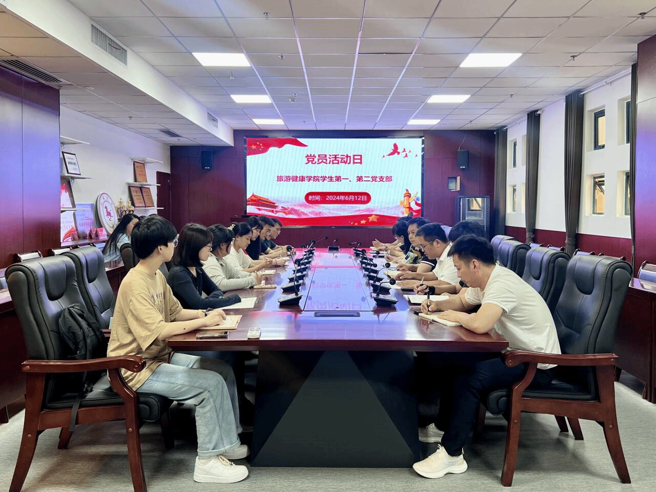 按照学校党员活动日学习教育统一安排,6月12日中午,旅游健康学院学生第一、第二党支部在学院会议室开展主题党日活动,会议由学生第一党支部书记张亚运主持。