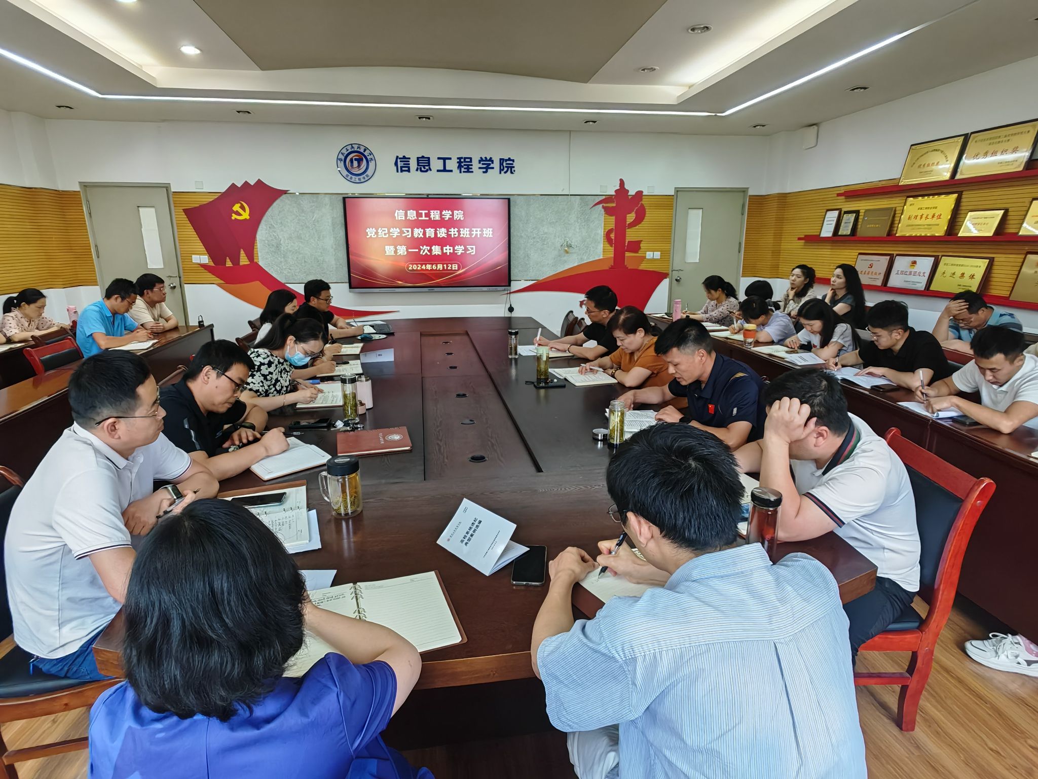 为扎实推动党纪学习教育向纵深发展,根据《安徽工商职业学院党纪学习教育读书班方案》要求,6月12日,信息工程学院党总支在党员活动室开展党纪学习教育读书班开班暨第一次集中学习活动。活动由党总支书记张静雯主持,全体教师党员参与活动。