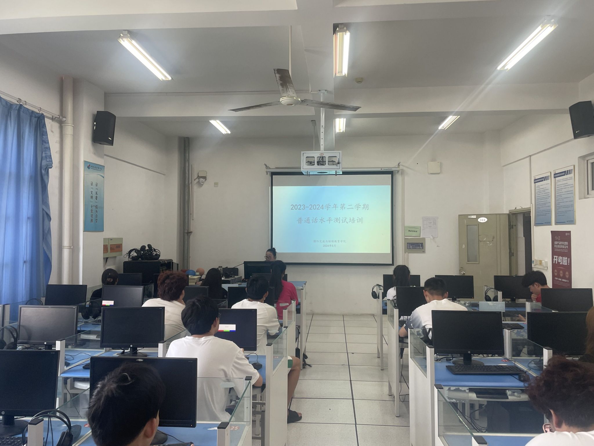 我院在正式测试前对参加测试的考生进行了普通话水平测试相关流程、操作等注意事项的培训;召开了监考老师、考务人员、工作人员的考务会和监考培训会;从组织考生进场、观看测试视频、信息采集、抽签、到完成考试,整个测试过程井然有序,测试工作有条不紊,确保了2024年上半年普通话水平测试工作的圆满完成。