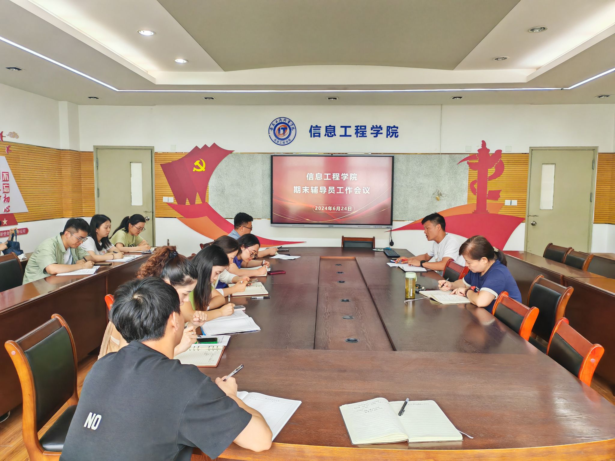 临近期末,为进一步做好期末各项学生安全工作,顺利迎接2024届毕业生返校,6月24日,信息工程学院于307会议室召开期末辅导员工作例会,持续推进和强化就业和学生安全工作,学院全体辅导员参会,信息工程学院党总支书记张静雯出席会议,会议由党总支副书记陈夺主持。