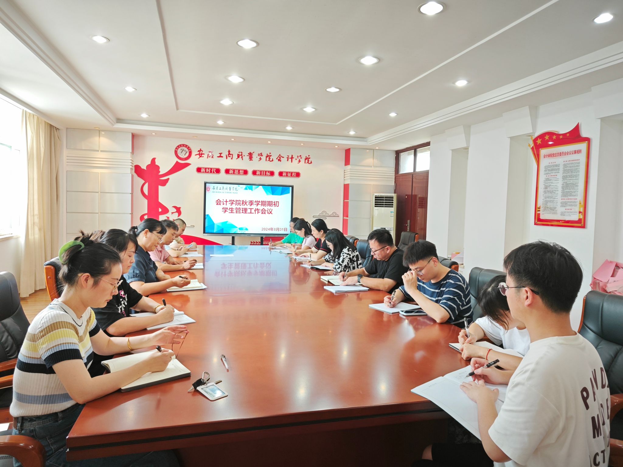 8月31下午,会计学院于明德楼二楼党建会议室召开秋季学期学生管理工作专题会议。学院党总支书记赵艳出席会议并讲话。学生科工作人员和全体专职辅导员参加了会议。学院党总支副书记李峰主持会议。