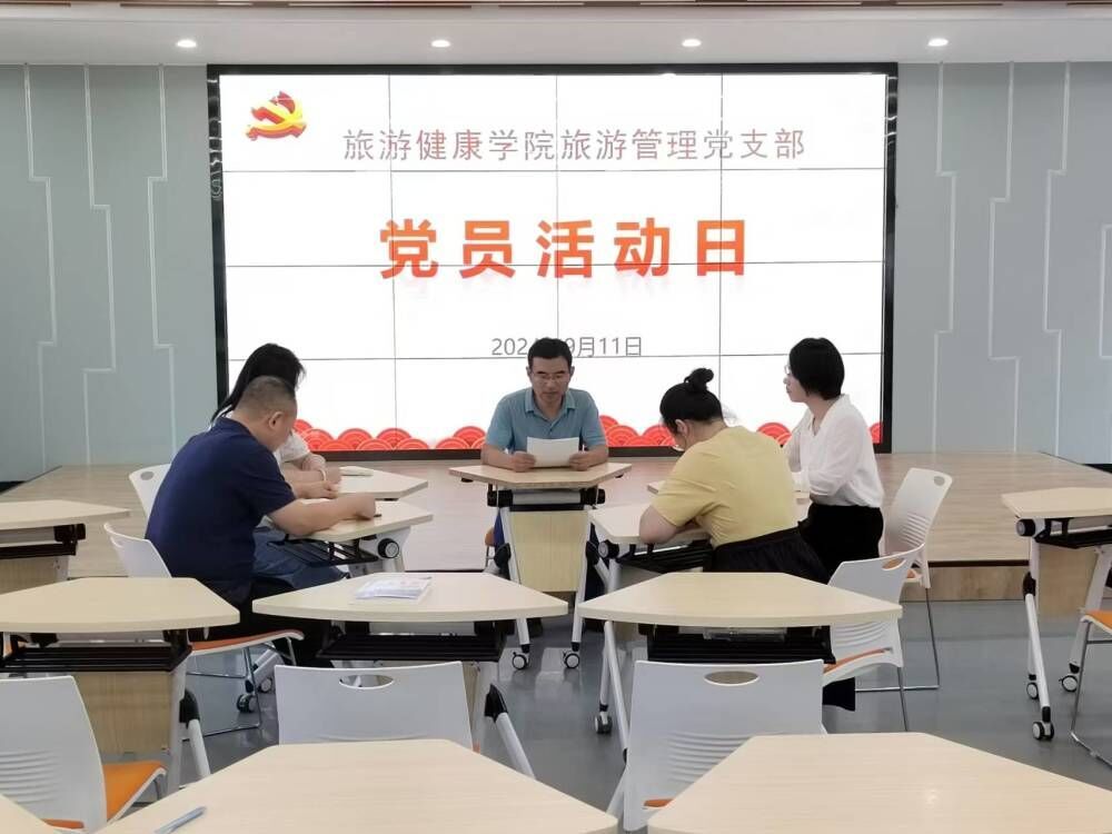 9月11日中午,旅游健康学院旅游管理教研室党支部在明德楼四楼VR实训室开展新学期首次主题党日活动,活动由支部书记吴子钟主持。