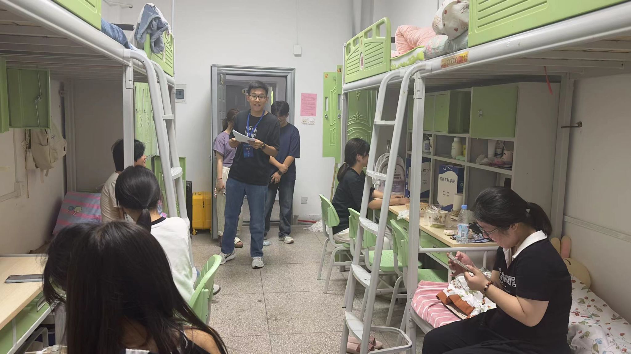 9月13日下午,24级新生辅导员及辅导员助理们逐一走访了各新生寝室,亲切地与新生们交谈,询问他们入学感受、生活习惯以及存在的困难。辅导员们耐心倾听,对于新生们提出的问题,都给予了详细的解答,同时也提醒新生们要注意个人安全,保持良好的生活习惯。