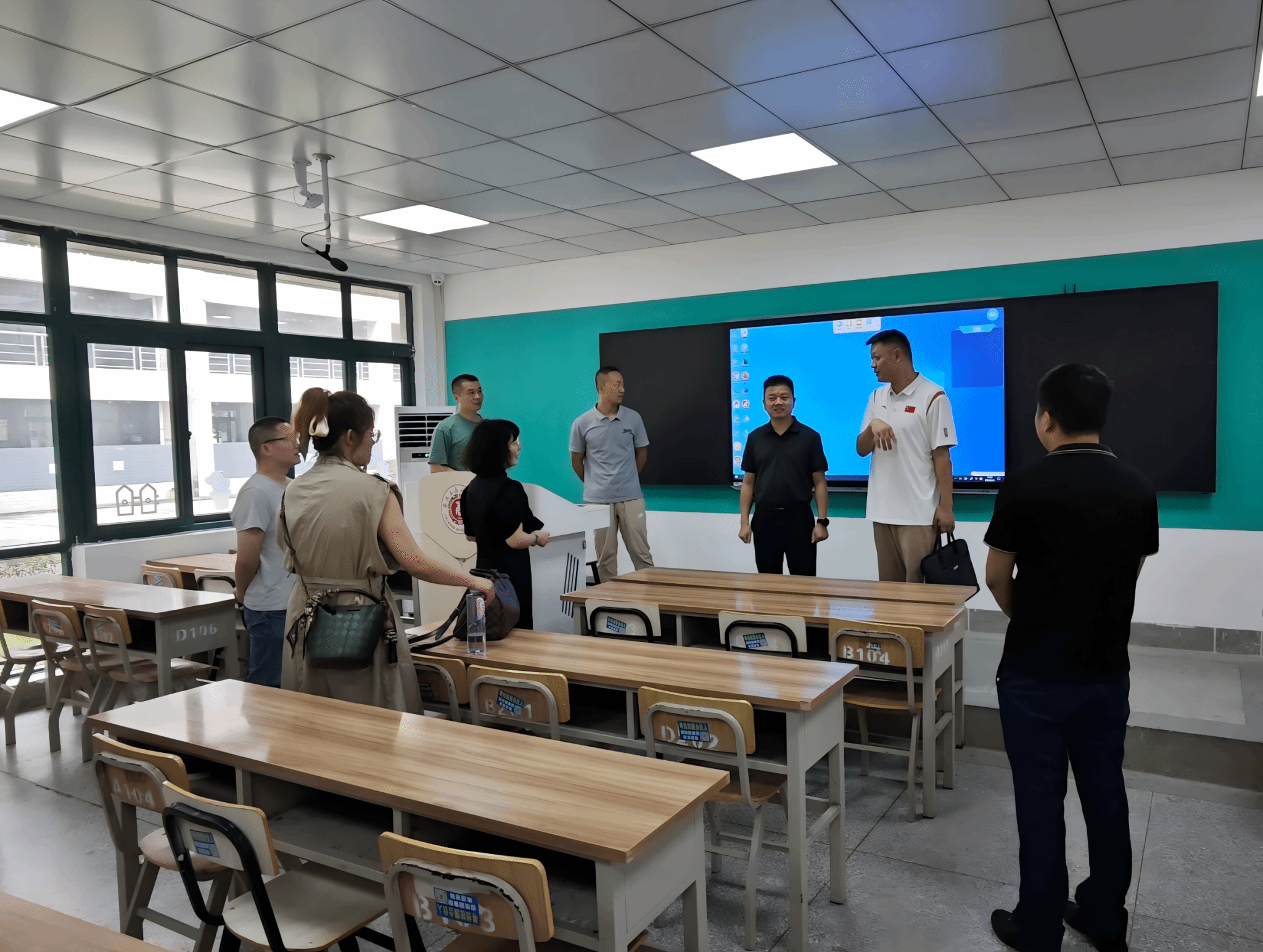 9月19日下午,安徽城市管理职业学院图文信息中心网络部主任胡靖一行莅临我校,就智慧教室建设进行深入考察与交流。信息化建设与发展处处长余丙炎,智慧教室项目建设负责人陶迎松热情接待并陪同考察。