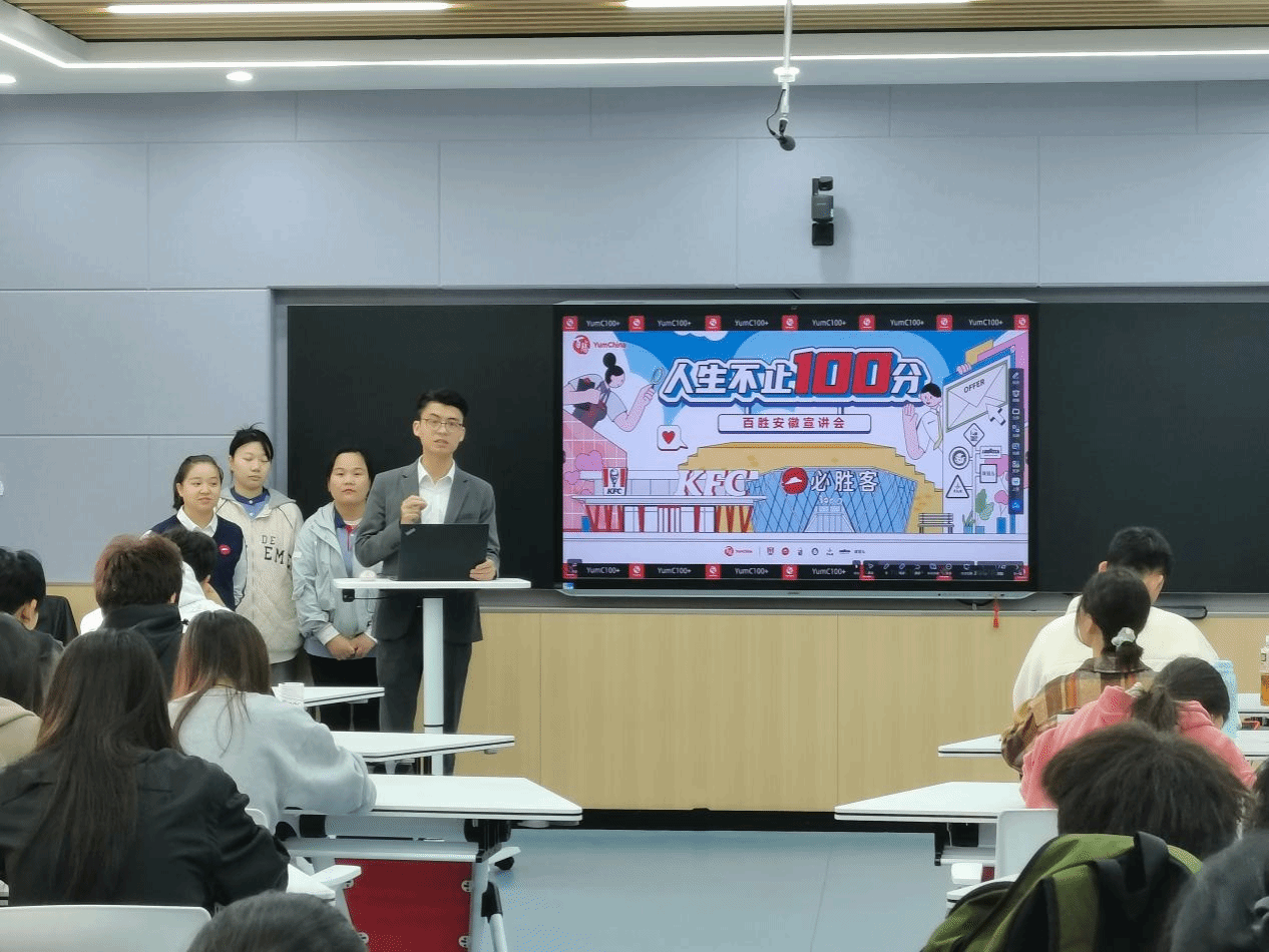 公开课邀请企业导师进校园,向广大师生展示了企业用人新标准、能力转化新路径,收到良好效果。本次活动受到学院领导的高度重视和百胜餐饮(安徽)有限公司的大力支持,百胜(安徽)派出了人力资源部HR,雇主品牌、校企合作项目PM暨管理学院企业导师王金苗老师进行课程分享。