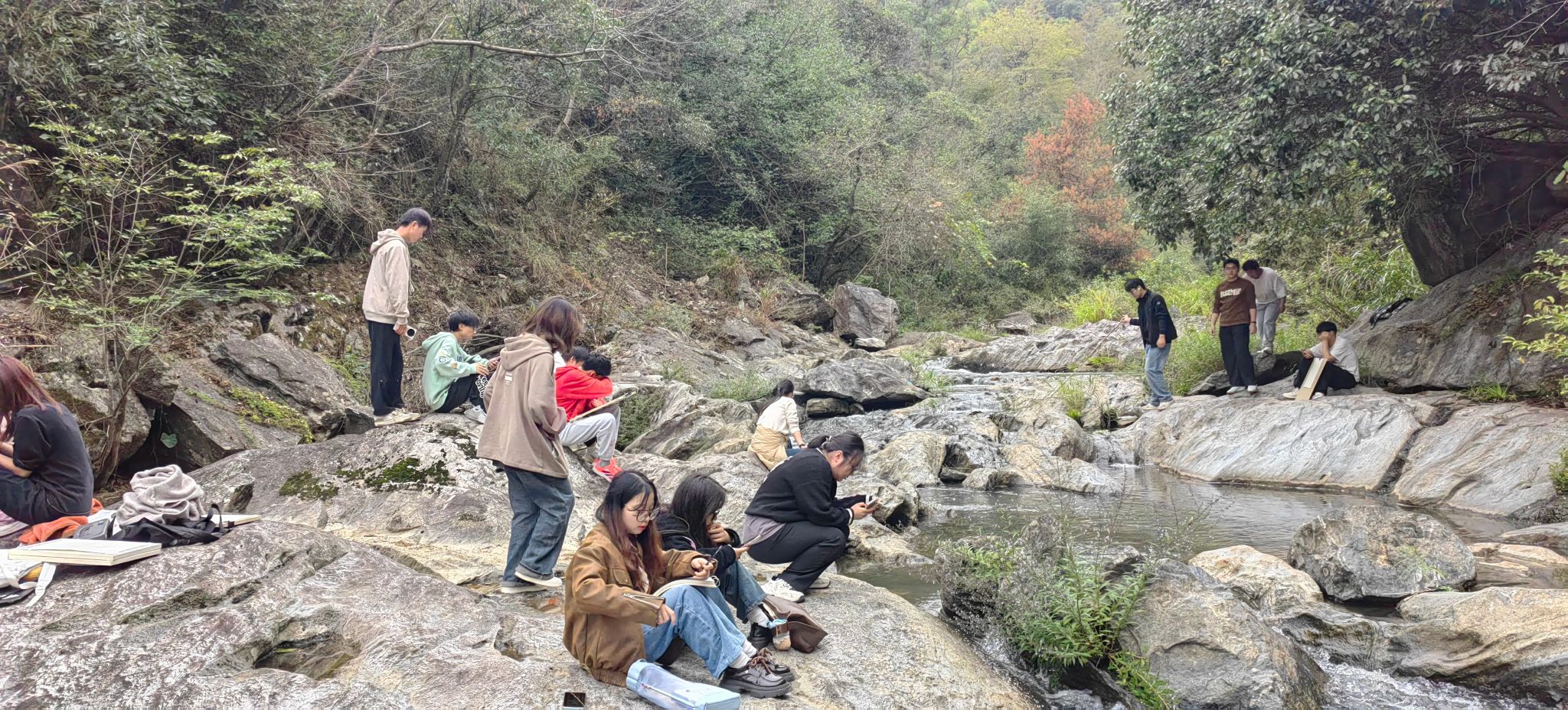 2024年10月26日,信息工程学院23级动漫制作技术专业学生在动漫制作技术教研室杭梅老师的带领下踏上了前往太湖县城西乡九井溪的旅程,开启了一场为期三天的专业实践教学活动。此次专业实践活动旨在让同学们在自然风光中汲取灵感,通过实地观察与创作,提升其艺术表现能力和专业技能。