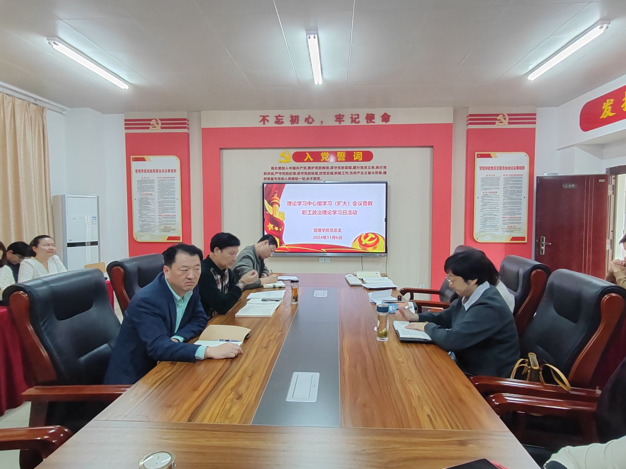 11月6日中午,管理学院召开二级理论学习中心组学习(扩大)会议暨教职工政治理论学习日会议,传达学习习近平总书记考察安徽重要讲话精神,研究部署学院学习贯彻工作。学院党政领导班子成员、全体教师参加学习交流。会议由学院党总支书记曹大友主持。