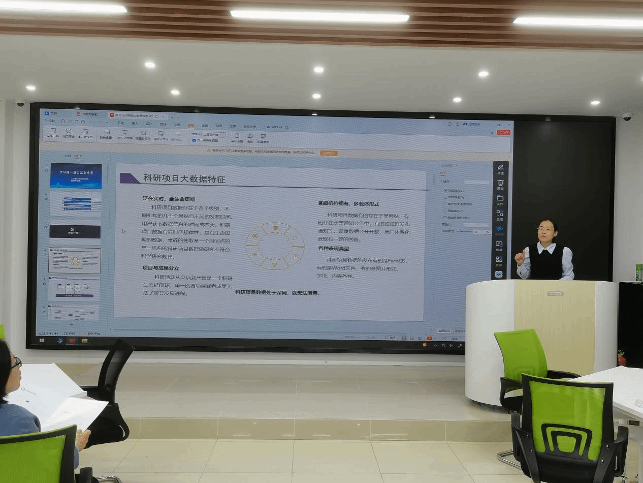 随后,王亚利讲师带来了《泛研全球科研项目数据库助力基金申报》的精彩分享。她详细介绍了泛研全球科研项目数据库的检索技巧和功能,并演示了如何利用该数据库快速检索本领域前沿立项情报、进行科研项目聚类分析、把握基金资助趋势等。此外,她还展示了基于科研项目为核心的综合情报服务平台,帮助教师们高效获取科研资讯,提升申报效率。
