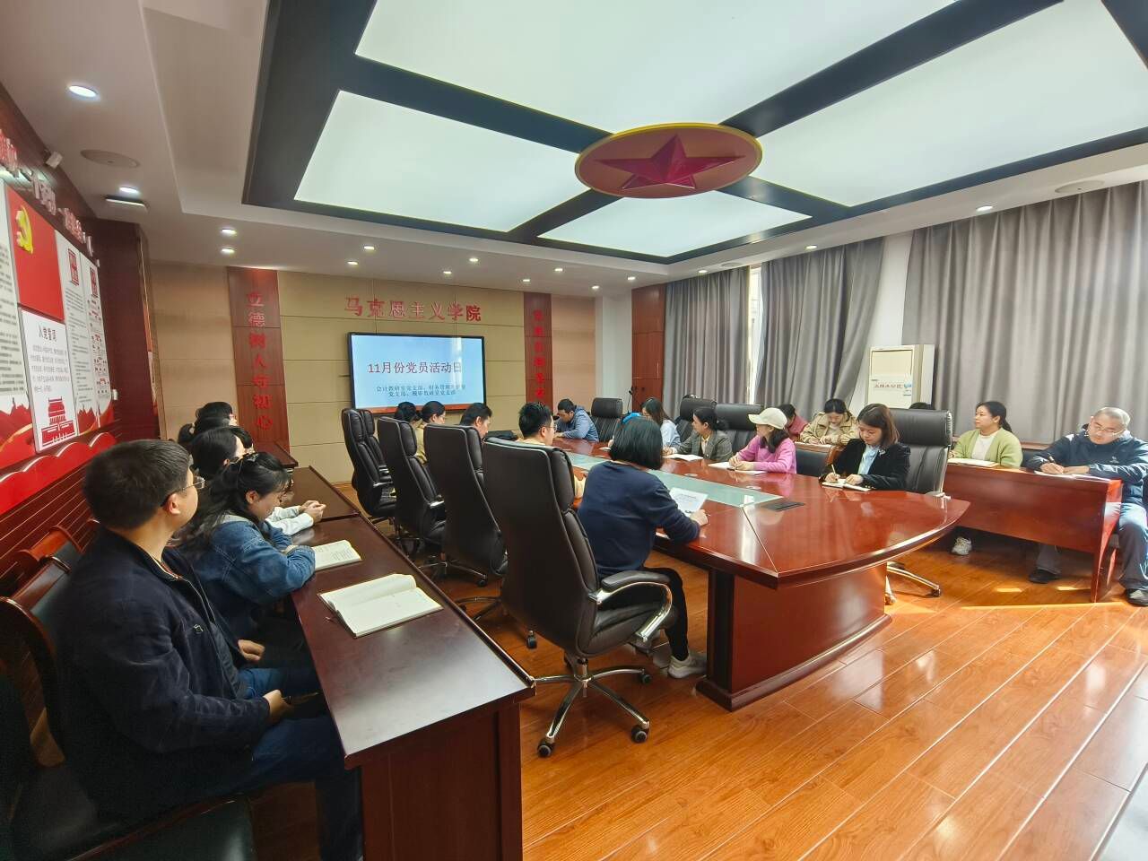2024年11月13日,会计学院会计教研室党支部、税审教研室党支部、财务管理教研室党支部联合开展11月份党员活动日活动,活动由会计教研室党支部书记张竹云老师主持,三个教工党支部全体教师党员参与学习。