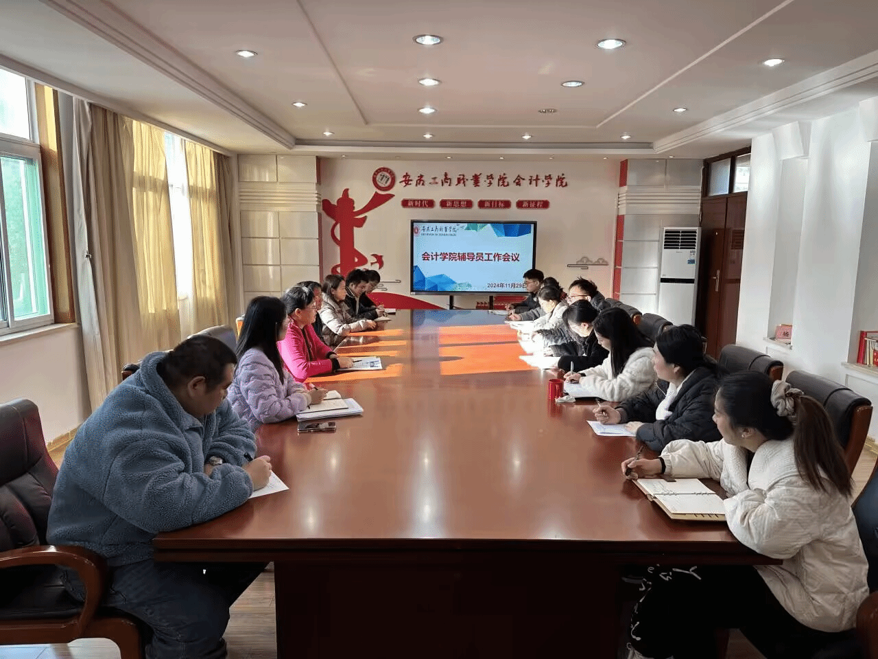 11月29日,会计学院在明德楼二楼党建会议室召开辅导员工作会议,学院领导及全体专职辅导员参会,学院党总支书记赵艳主持会议。