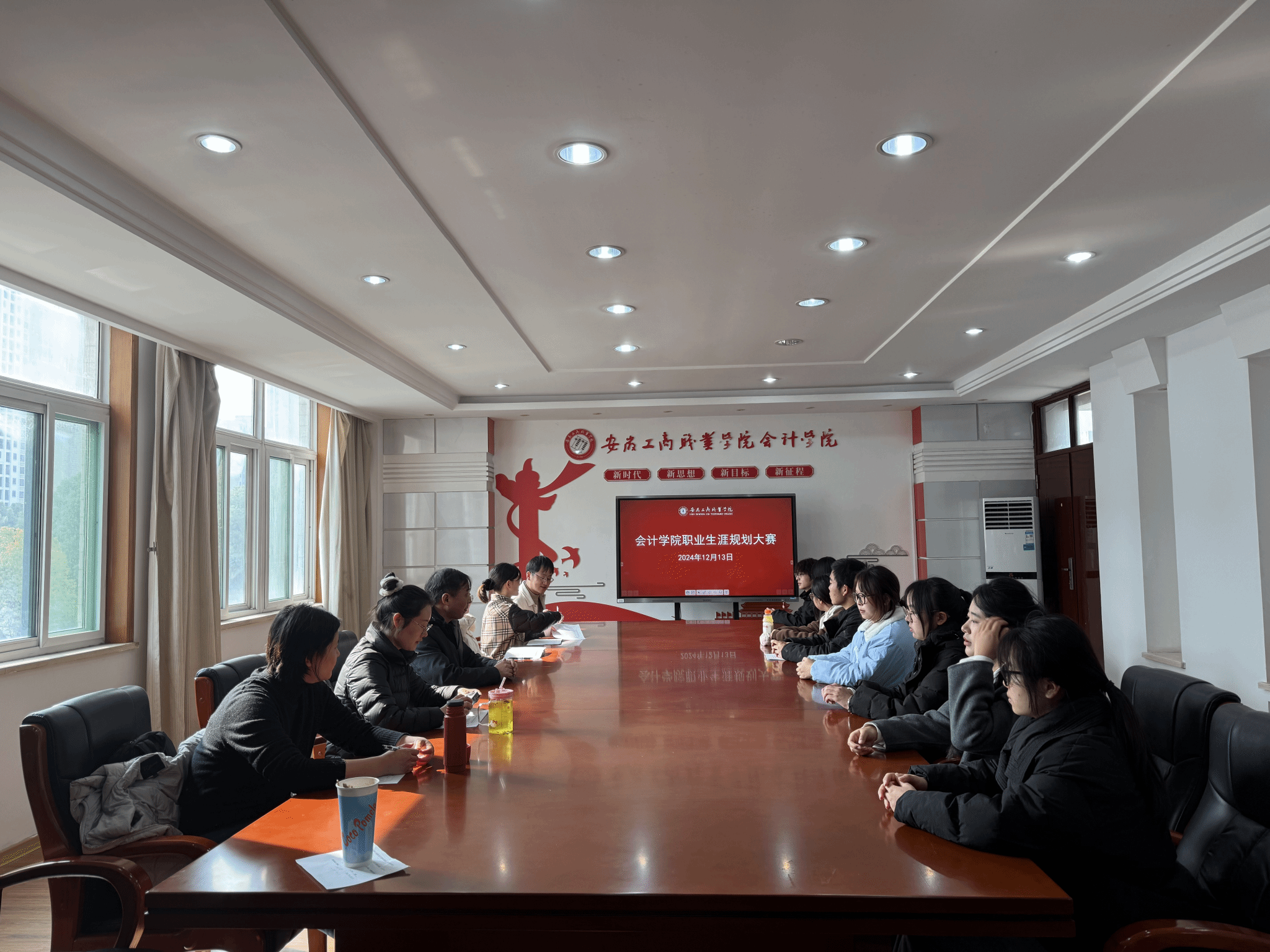 12 月 13 日,会计学院大学生职业生涯规划大赛在明德楼党建会议室精彩上演,学院精心准备,邀请专业老师作为评委,20多位同学报名参加现场比赛。本次大赛以“筑梦青春志在四方,规划启航职引未来”为主题,让“时代新人铸魂工程”落实落地,旨在引导学生树立正确的职业观与择业观,提升职业规划能力。