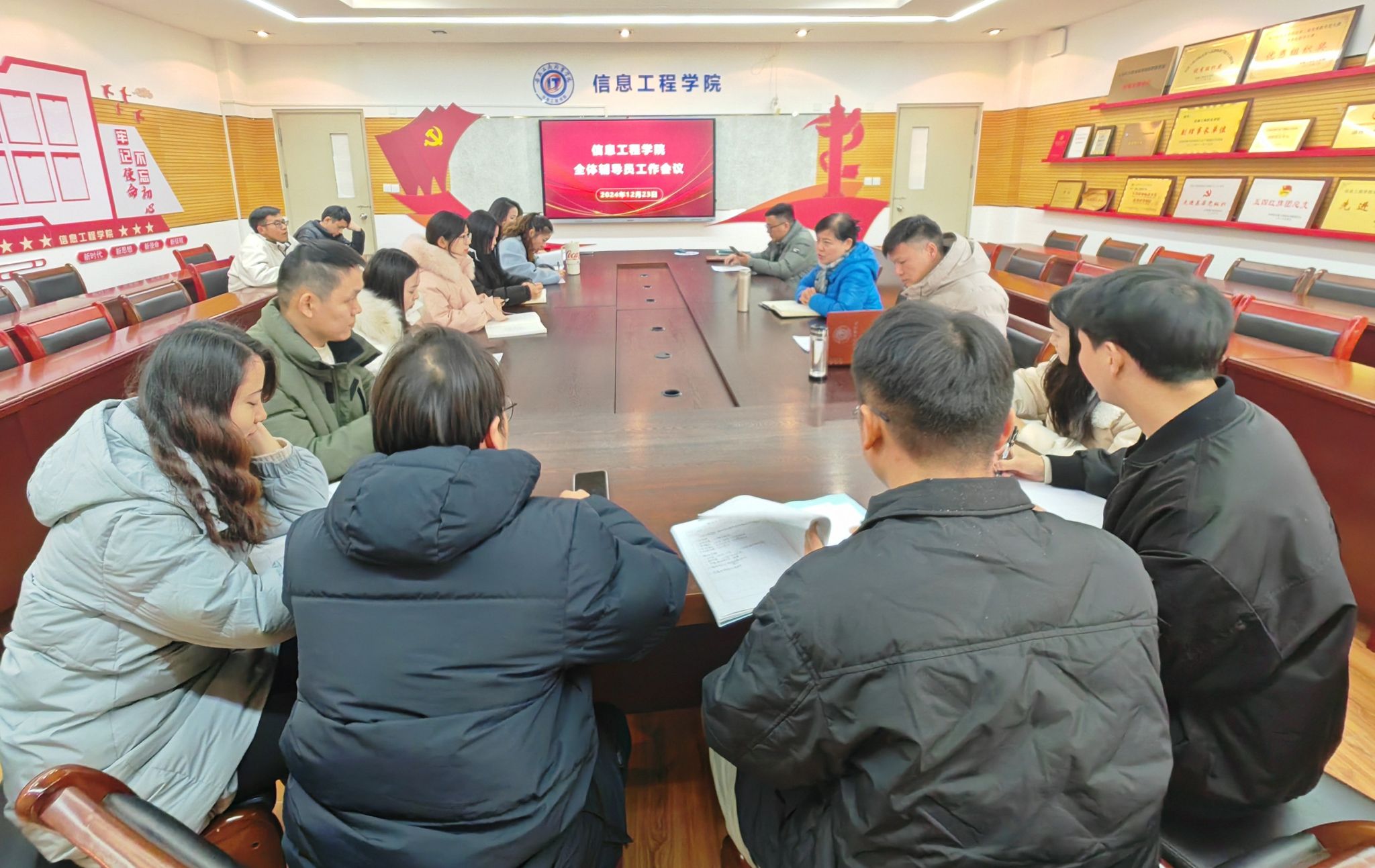 为进一步提升学生工作水平,强化学生安全教育,部署期末学生管理各项工作,12月23日,信息工程学院在307会议室召开期末辅导员工作例会。信息工程学院党总支书记张静雯出席会议并讲话,学院全体辅导员参加会议,会议由学院党总支副书记陈夺主持。