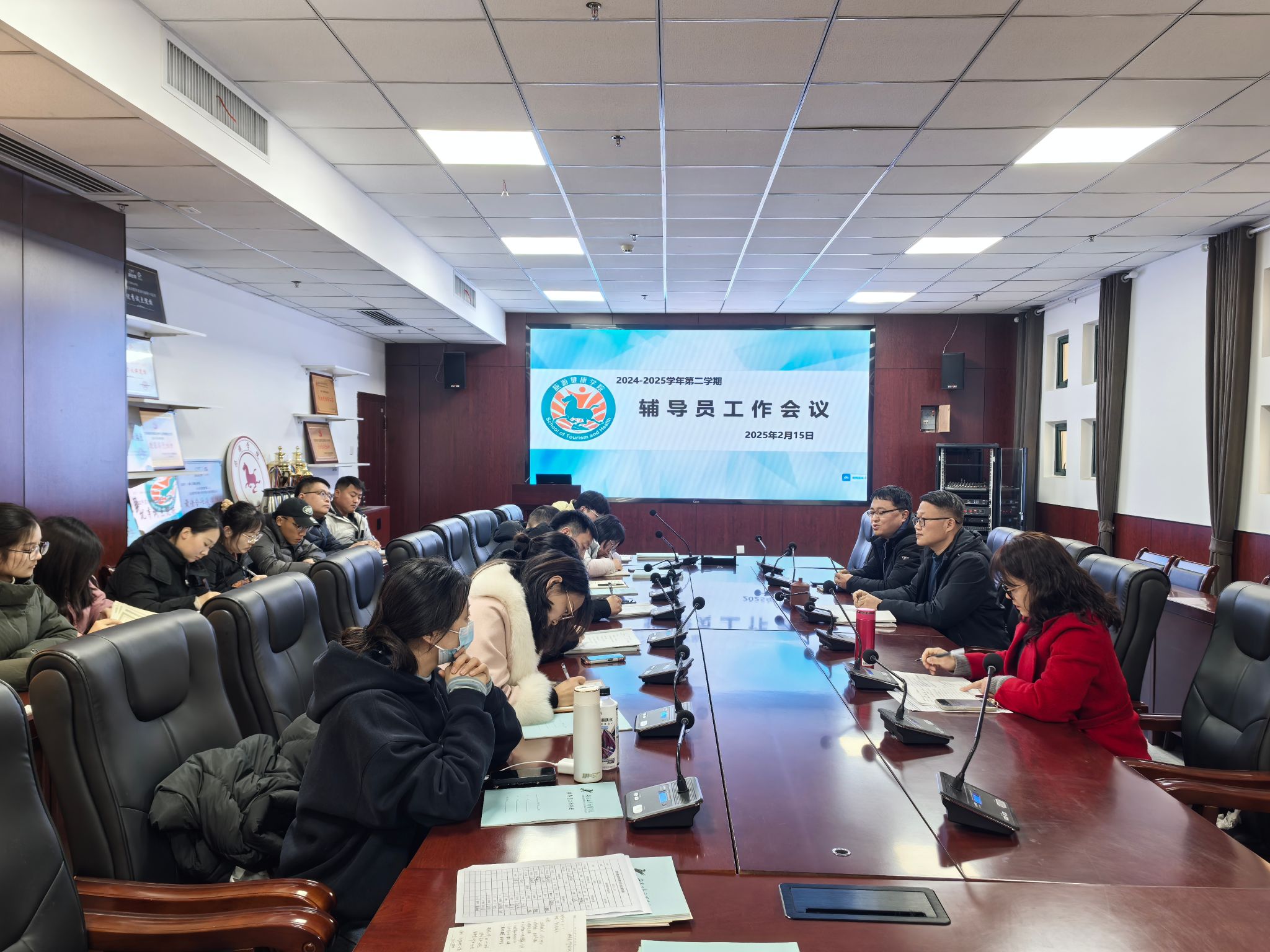 为确保新学期学生工作平稳开展,2月15日,旅游健康学院于学院会议室召开期初全体辅导员工作会议。旅游健康学院党总支书记杨锐、副院长王彦龙及全体专兼职辅导员参加会议,会议由党总支副书记刘燕主持。