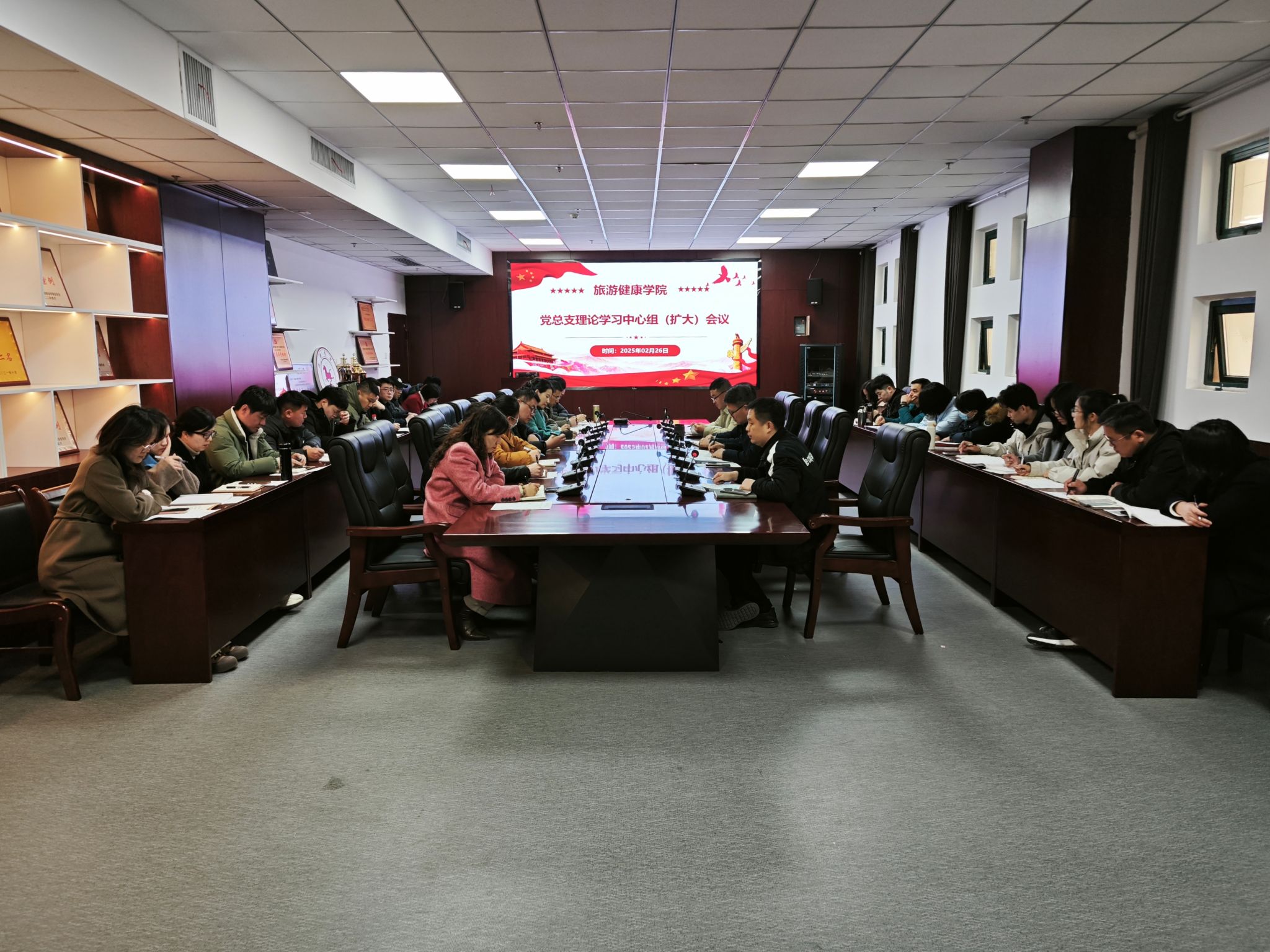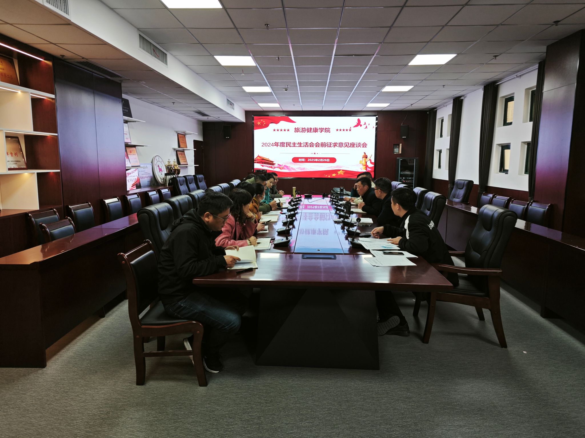 按照学校关于印发《关于召开2024年度民主生活会的通知》的要求,2月26日下午,旅游健康学院党总支在学院会议室召开级理论学习中心组扩大会议暨学院领导班子2024年度民主生活会会前专题学习会,会议由党总支书记杨锐主持,党总支全体委员、各支部书记及党员教师参加了会议。