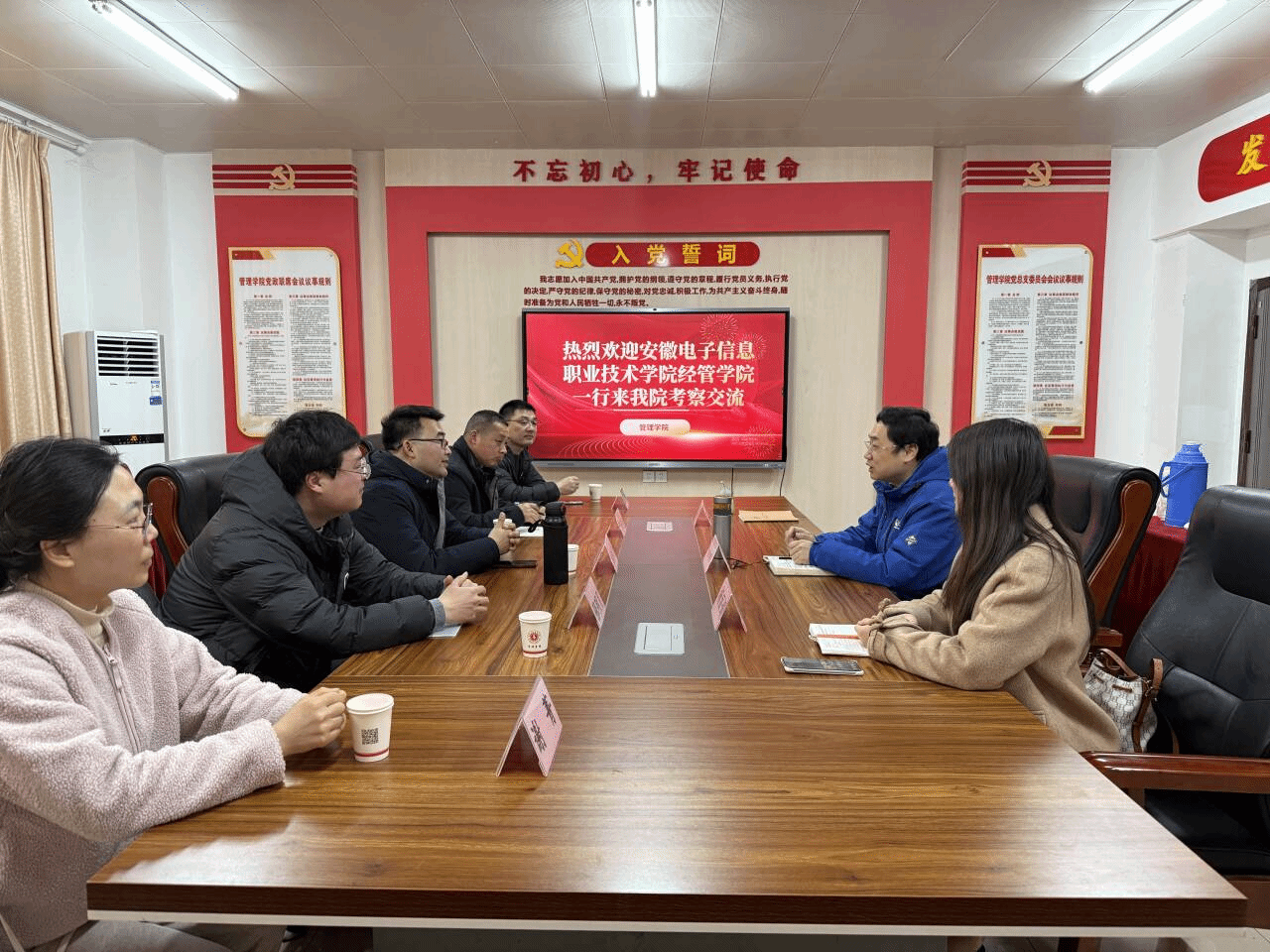 3月10日上午,安徽电子信息职业技术学院经济管理学院副院长施艳昭、电子商务教研室主任谢菁、市场营销教研室主任何云春、物流管理教研室主任张明月、电子商务骨干教师尤锐一行5人到访管理学院,围绕专业建设、产教融合及人才培养等主题开展深入交流。管理学院副院长倪伟、物流管理教研室主任杨丽娟、市场营销教研室主任胡其亮、电子商务教研室副主任马妮娜及教务科长漆悦参与座谈。