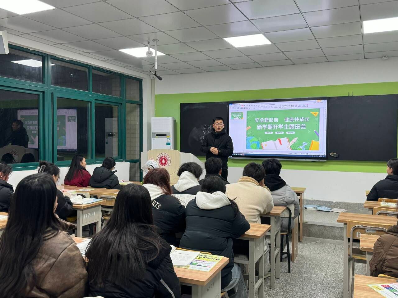 新学期伊始,为进一步增强学生安全意识,筑牢安全防线,旅游健康学院各班级围绕寝室安全、校园安全、防诈骗等内容展开安全主题教育班会。