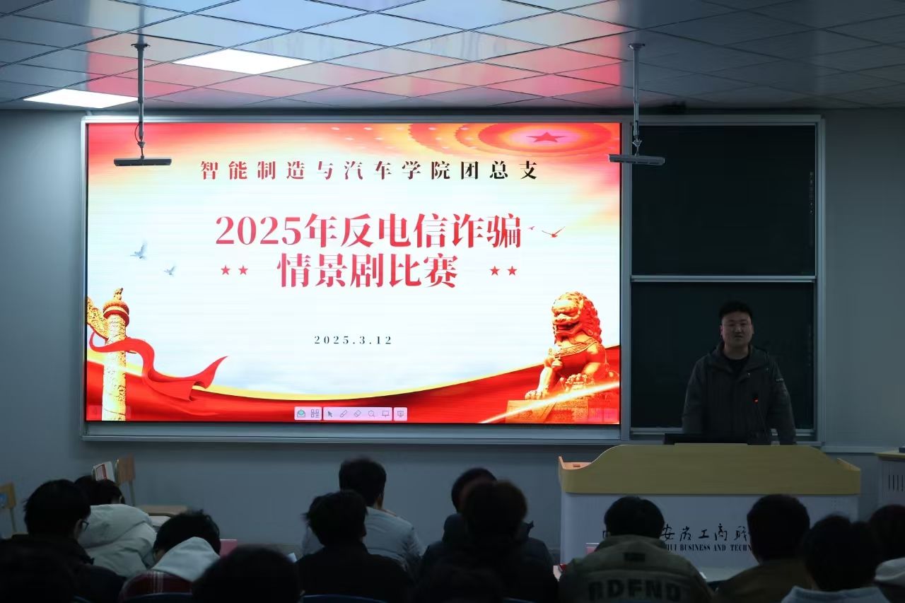 为切实提高学生的反诈意识和能力,3月12日,智能制造与汽车学院在9号多媒体教室举办了一场别开生面的反电信诈骗情景剧比赛。此次比赛由学院团总支主办,吸引了众多学生积极参与,为校园安全建设增添了浓厚的一笔。
