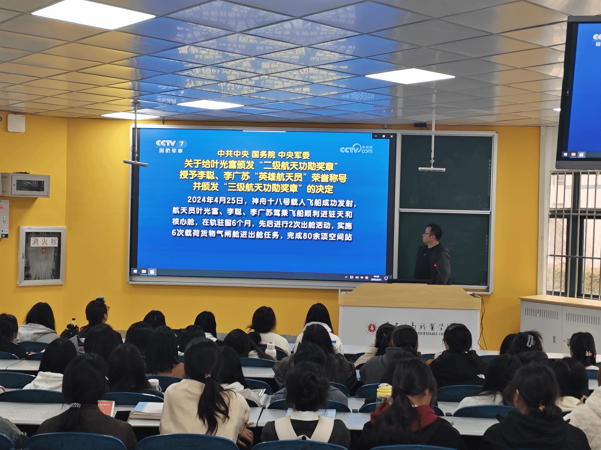 活动期间,各班级通过集中观看与自主观看相结合的方式,深入了解三位航天员的成长历程、训练过程和飞天故事。叶光富、李聪、李广苏三位航天员在飞行任务中展现出卓越的专业素养、奉献精神和坚韧意志,为广大青年学子树立了榜样。
