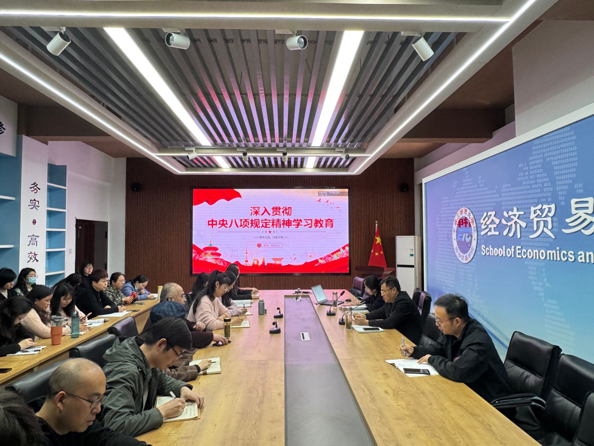 4月2日下午,经济贸易学院在五楼会议室召开深入贯彻中央八项规定精神学习教育动员部署会,学习贯彻习近平总书记关于深入贯彻中央八项规定精神学习教育的重要讲话和重要指示精神,传达学习《中共中央办公厅关于在全党开展深入贯彻中央八项规定精神学习教育的通知》精神以及校党委关于深入贯彻中央八项规定精神学习教育的部署要求。会议由学院党总支书记边昊主持,全体教职工参加会议。