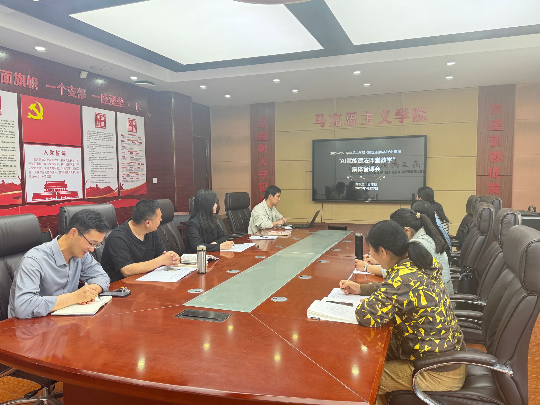 为推进信息化技术在思政课教学的应用,4月23日下午,马克思主义学院思想道德与法治教研室开展“AI赋能德法课堂教学”集体备课会。全体思政课教师参加集体备课会。