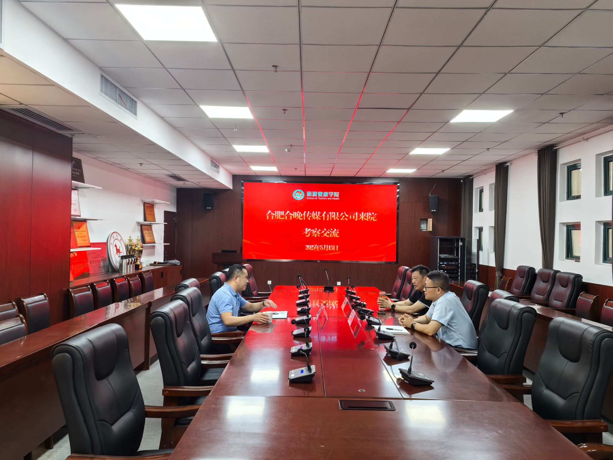 为深化校企合作,推动产教融合,助力毕业生高质量就业,5月15日,合肥合晚传媒有限公司文教事业部教育运营一部主任沈正田来旅游健康学院考察交流。学院院长傅绪明、党总支书记杨锐热情接待并陪同参观座谈,双方围绕人才培养、实习就业、校企协同育人等议题展开深入探讨。