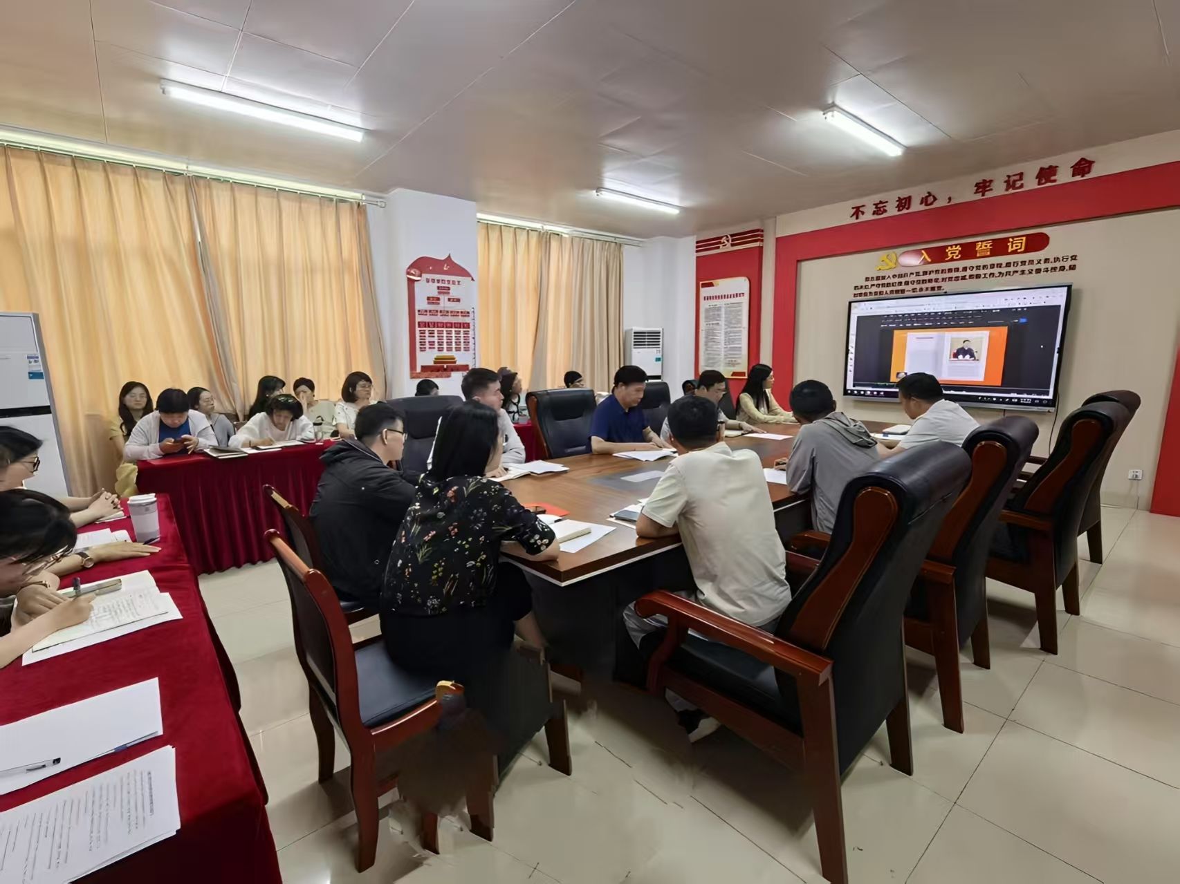 6月4日中午,管理学院党总支在学院党员活动室召开6月份教职工政治理论学习会议暨理论学习中心组学习(扩大)会议,重点学习习近平总书记关于深入贯彻中央八项规定精神学习教育的重要讲话和重要指示精神、习近平总书记关于教育的重要论述,开展深入贯彻中央八项规定精神学习教育警示,引导全体教职工进一步深化思想认识、明确责任担当、筑牢作风堤坝。学院党总支书记曹大友主持会议,学院党政领导班子成员、党总支委员及全体教职工参会。