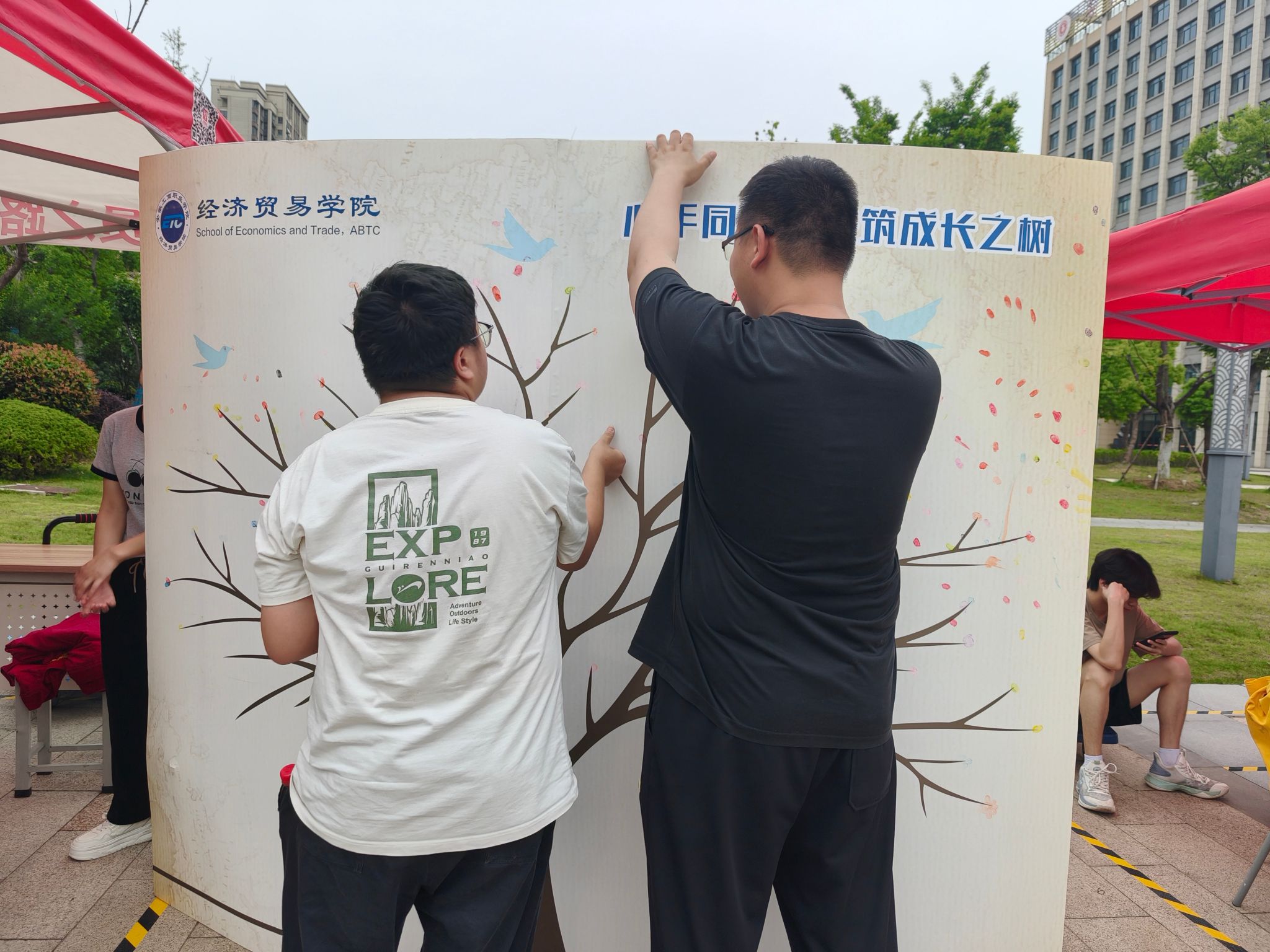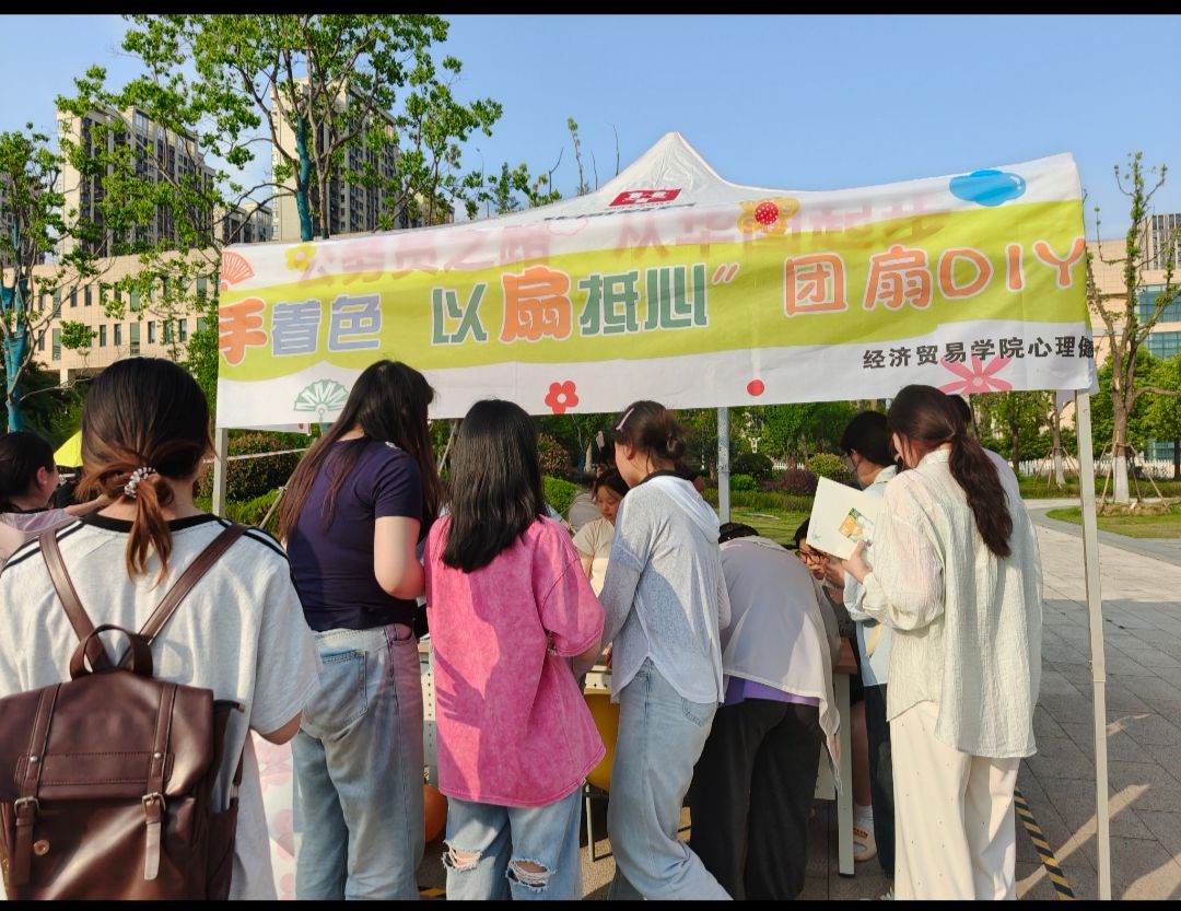 5月21-23日,学院在三商广场开展“以手着色・以扇抵心”干花团扇DIY活动,大家以空白团扇为载体,通过胶水贴花、水墨绘画等形式,将传统纹样、自然元素与个人情感融合于扇面设计;在“心手同印・共筑成长之树”活动中,大家用颜料在空白画布上印下手指印或手掌轮廓,共同拼贴成一棵“成长之树”。活动现场,学生们专注于图案搭配与色彩调和,在手工创作中舒缓情绪、提升审美素养,培养积极情绪管理能力,同时感受中国传统文化的独特魅力,实现“以美育人、文化润心”的双重价值。