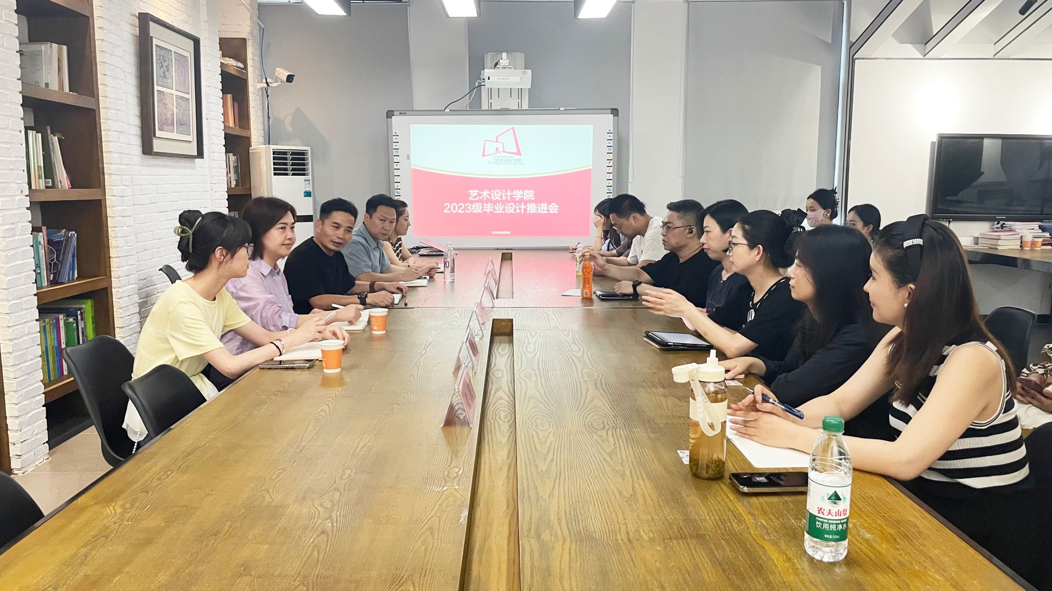 为扎实推进2026届毕业设计工作,提升人才培养质量,深化产教融合,拓展成果展示平台。6月26日,艺术设计学院在徽派艺术研究中心召开毕业设计工作推进会。本次艺术设计学院与金大地庐州天地·大地美术馆联合主办毕业设计作品展,预计在下个月下旬在大地美术馆举办,旨在为毕业生搭建面向社会的专业展示舞台。艺术设计学院副院长邱志斌、教务科科长张翌、大地美术馆策展经理陈玮、庐州天地媒体宣传经理倪亚娟以及各教研室主任、全体指导教师参加本次会议。会议由邱志斌主持。