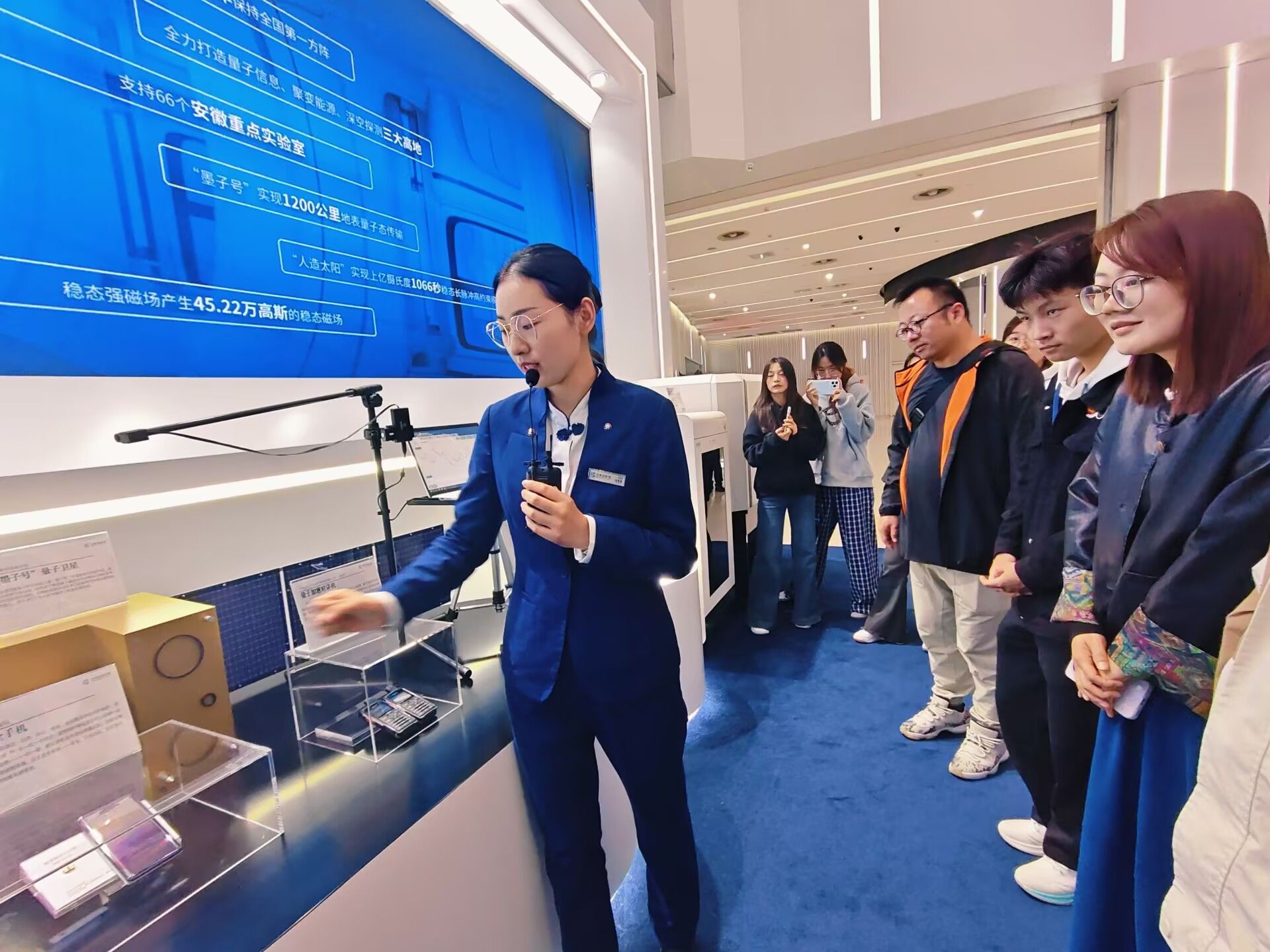 在讲解员的引导下,同学们依次参观了“未来科技展望”展厅、“人造太阳”EAST装置模型区、“数字江淮”互动体验区等核心展区。通过沉浸式体验和深入讲解,大家直观感受到科技革命带来的生活方式深刻变革、核聚变能源研究的突破性进展以及安徽数字与实体经济融合发展的澎湃活力。“此次活动,让我近距离触摸到我国科技发展的强劲动能,让我更加明确了未来学习的方向,让我在科技赋能中勇敢前行。”参与者王磊同学感叹道。