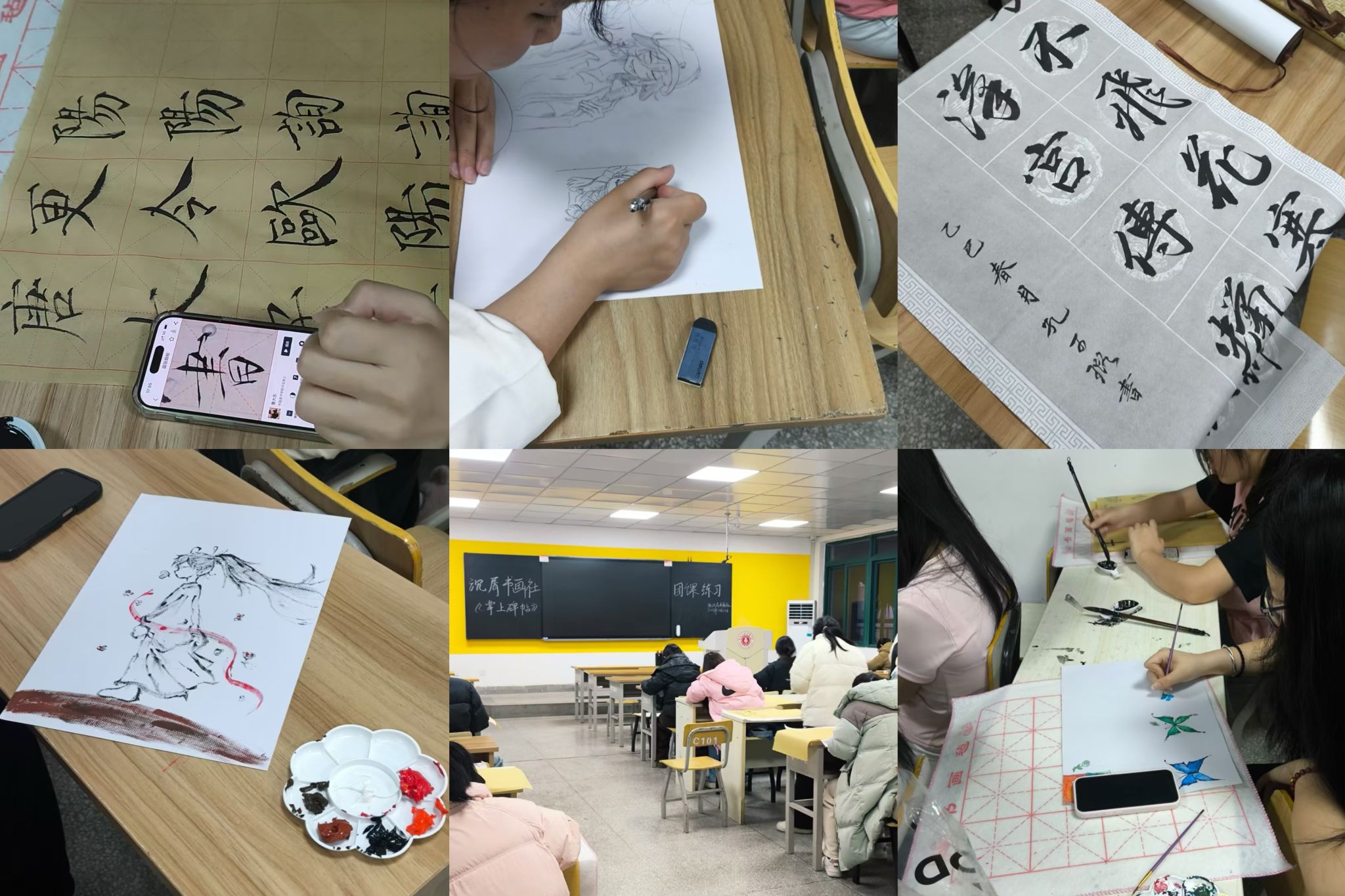 2007年创办的校沉屑书画社以其深厚的文化底蕴、浓郁的艺术氛围和蓬勃的创新活力,在校园社团百花园中独树一帜,生动诠释了“活力社团”的丰富内涵。社团秉承“传承中华优秀传统文化,提升书画艺术修养,丰富校园文化生活”的宗旨,为热爱书画艺术的学子们搭建了学习交流、切磋技艺、展示才华的闪亮舞台,成为校园美育建设和文化传承的重要阵地。
