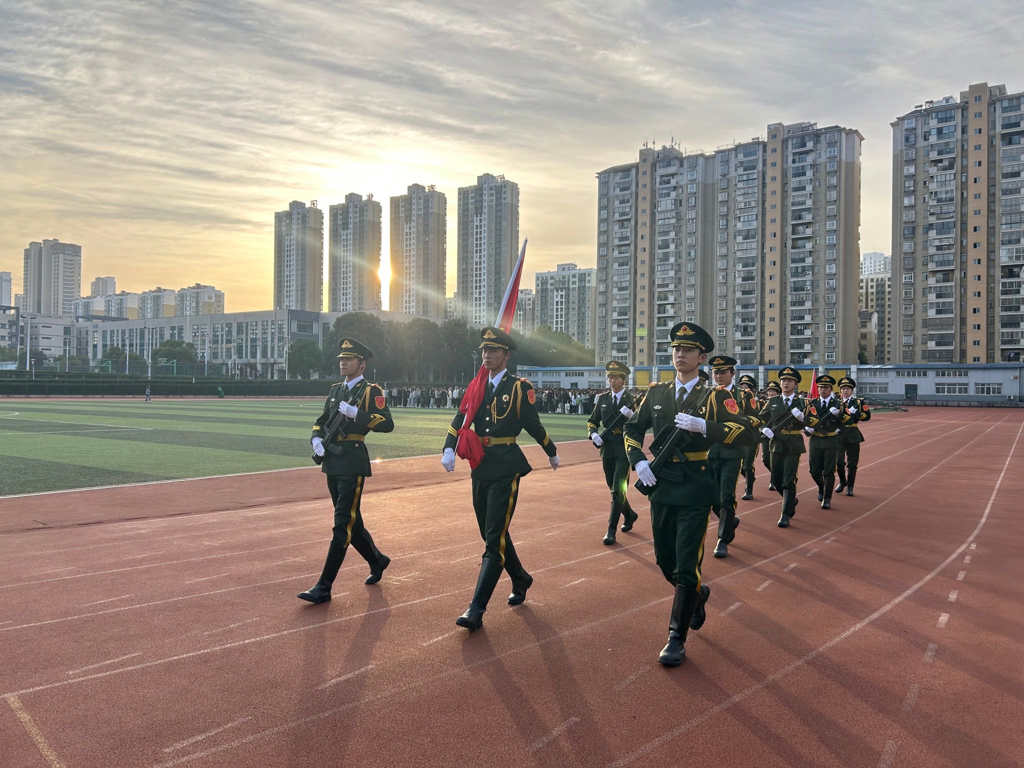 7时20分,升旗仪式在激昂的《义勇军进行曲》中拉开序幕。国旗护卫队成员身着统一制服,步伐铿锵,护送五星红旗走向升旗台。在全体师生的注目礼下,鲜艳的国旗冉冉升起,迎风飘扬,嘹亮的国歌声响彻校园,展现出对祖国的无限敬意与热爱。