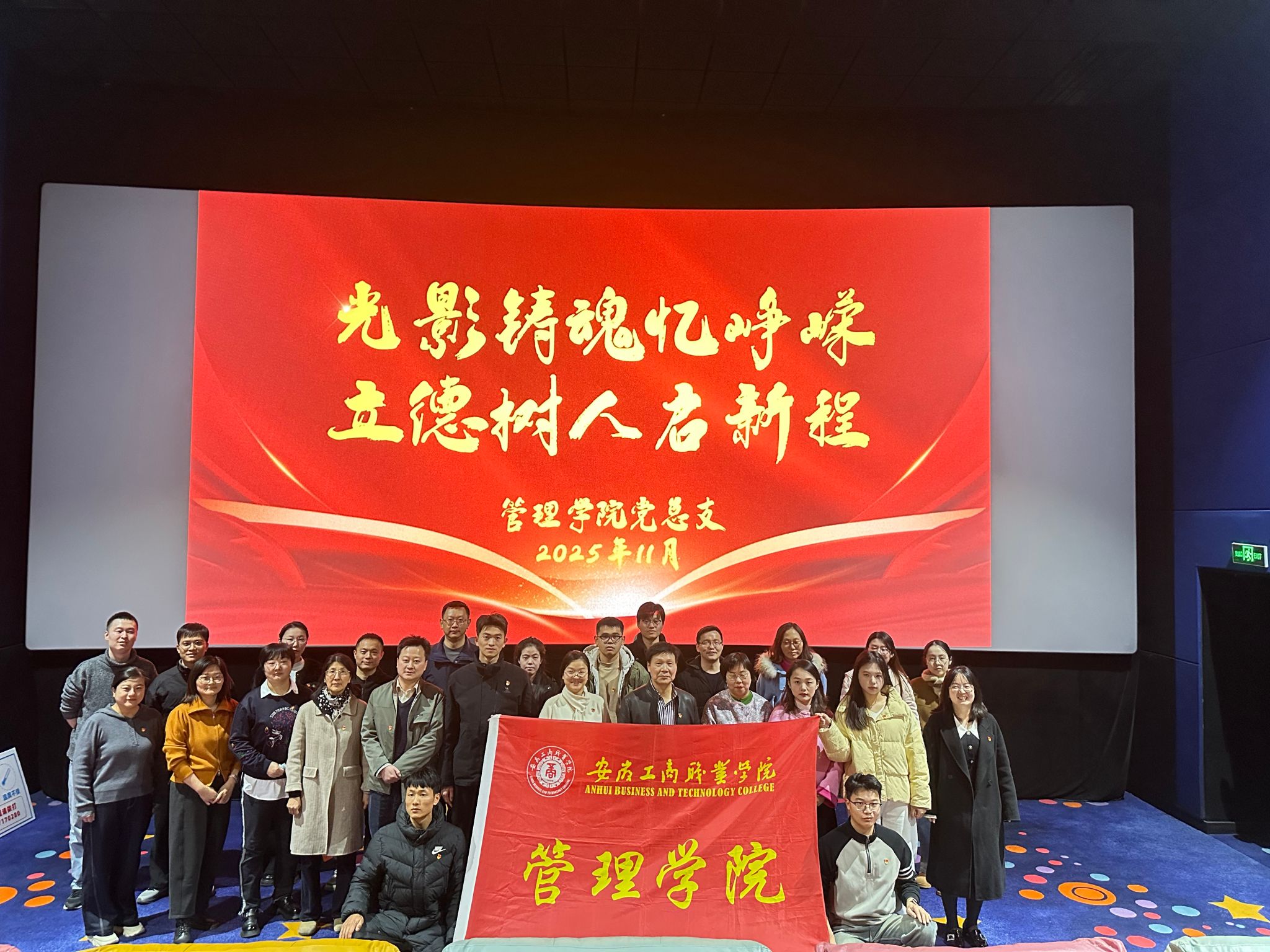为深入推进教职工思想政治建设,创新理论学习形式,筑牢立德树人思想根基,11月19日下午,管理学院党总支组织全体教职工赴北城万达开展11月份教职工政治理论学习暨“光影铸魂忆峥嵘 立德树人启新程”红色主题观影活动。全体教职工通过沉浸式观看影片《志愿军:浴血和平》,重温波澜壮阔的革命历史,汲取砥砺前行的精神力量。