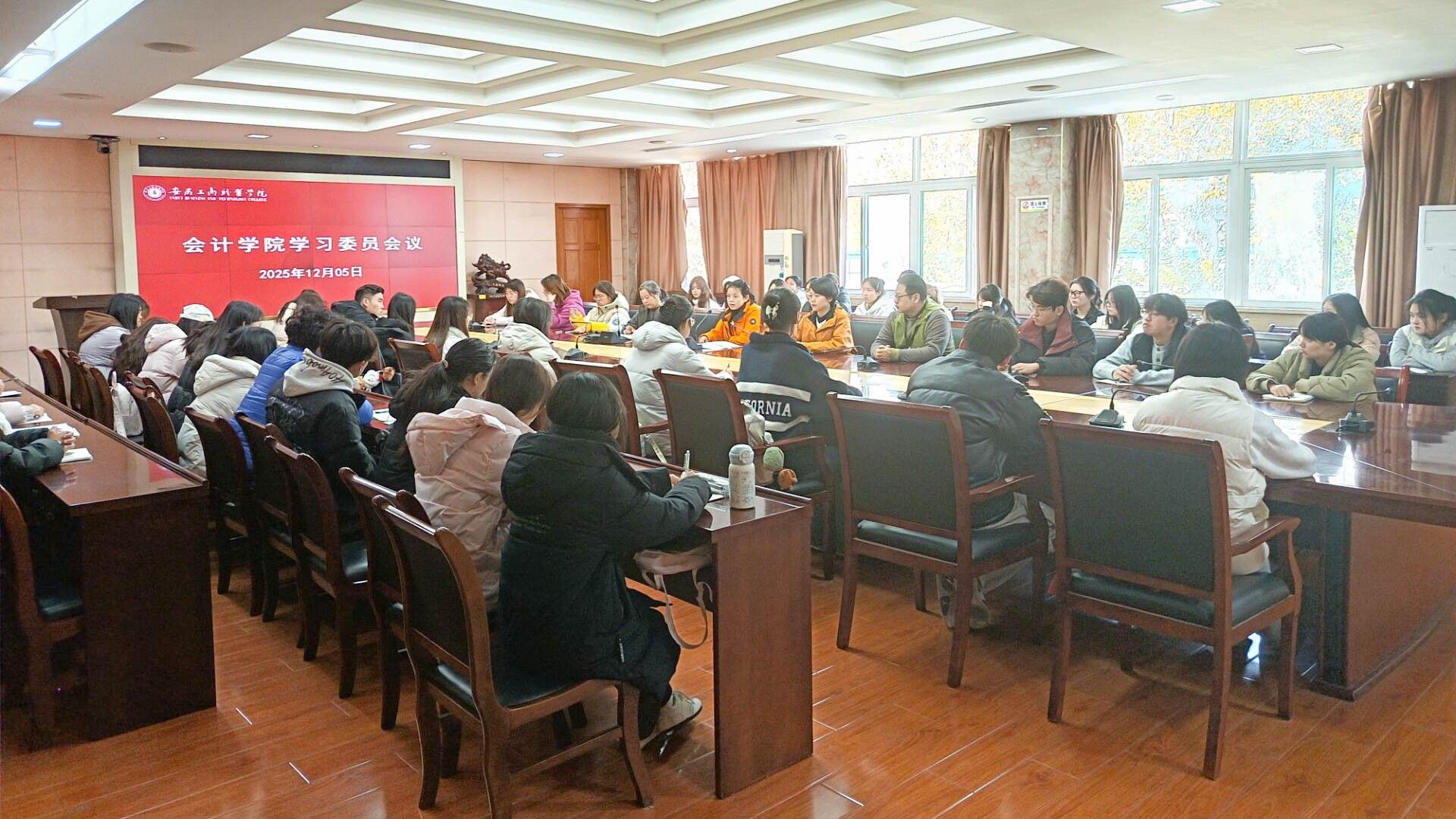 2025年12月5日中午,会计学院在明德楼会议室召开了全体学习委员工作会议。会计学院副院长费玄淑、教务科全体教师以及全院在校班级学习委员参加了会议。