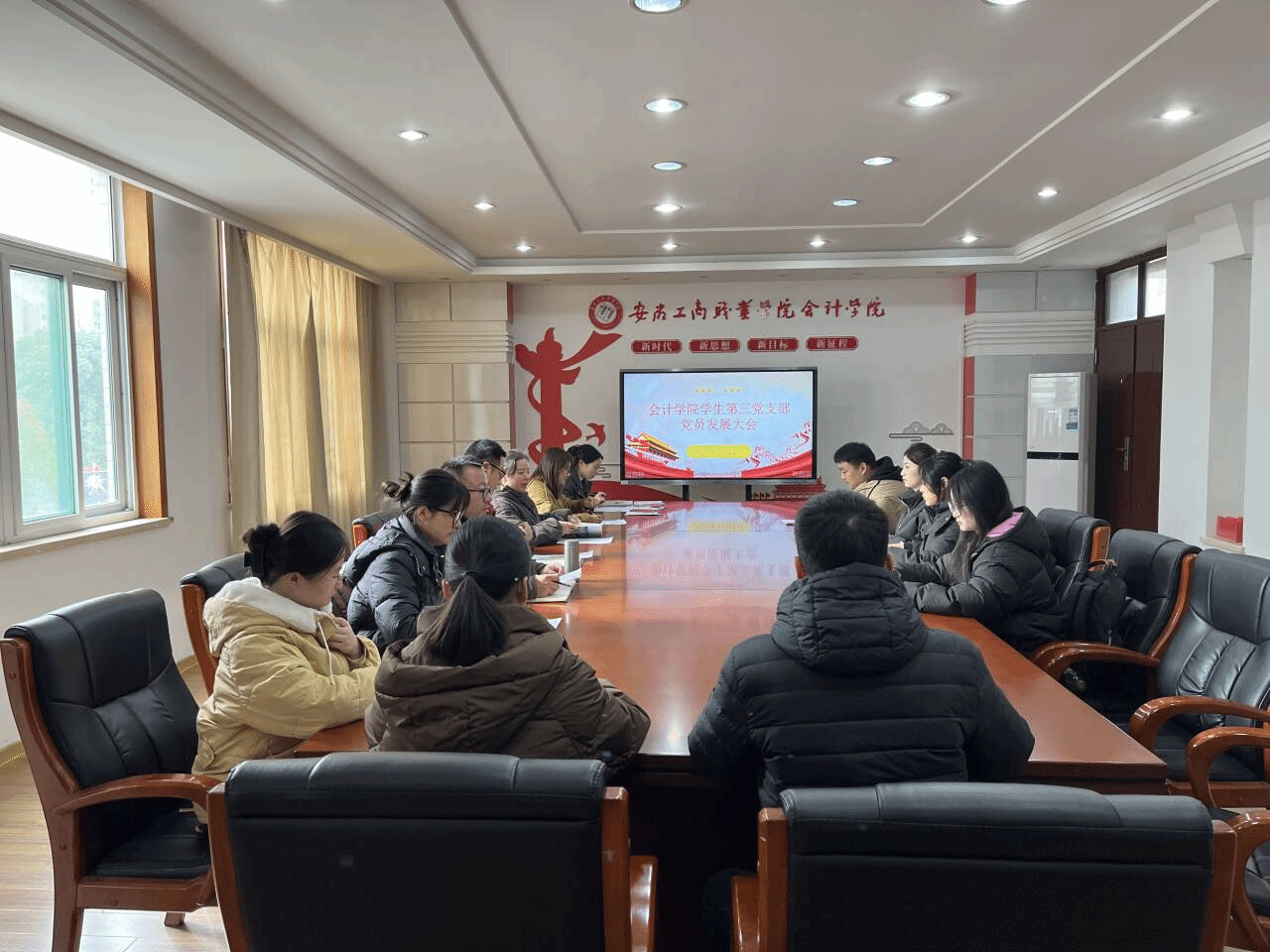 12月4日,会计学院学生第三党支部在明德楼二楼党建会议室召开接收中共预备党员大会。会议由党支部书记陈晓蔓主持,入党介绍人及学生第三党支部全体党员参会。