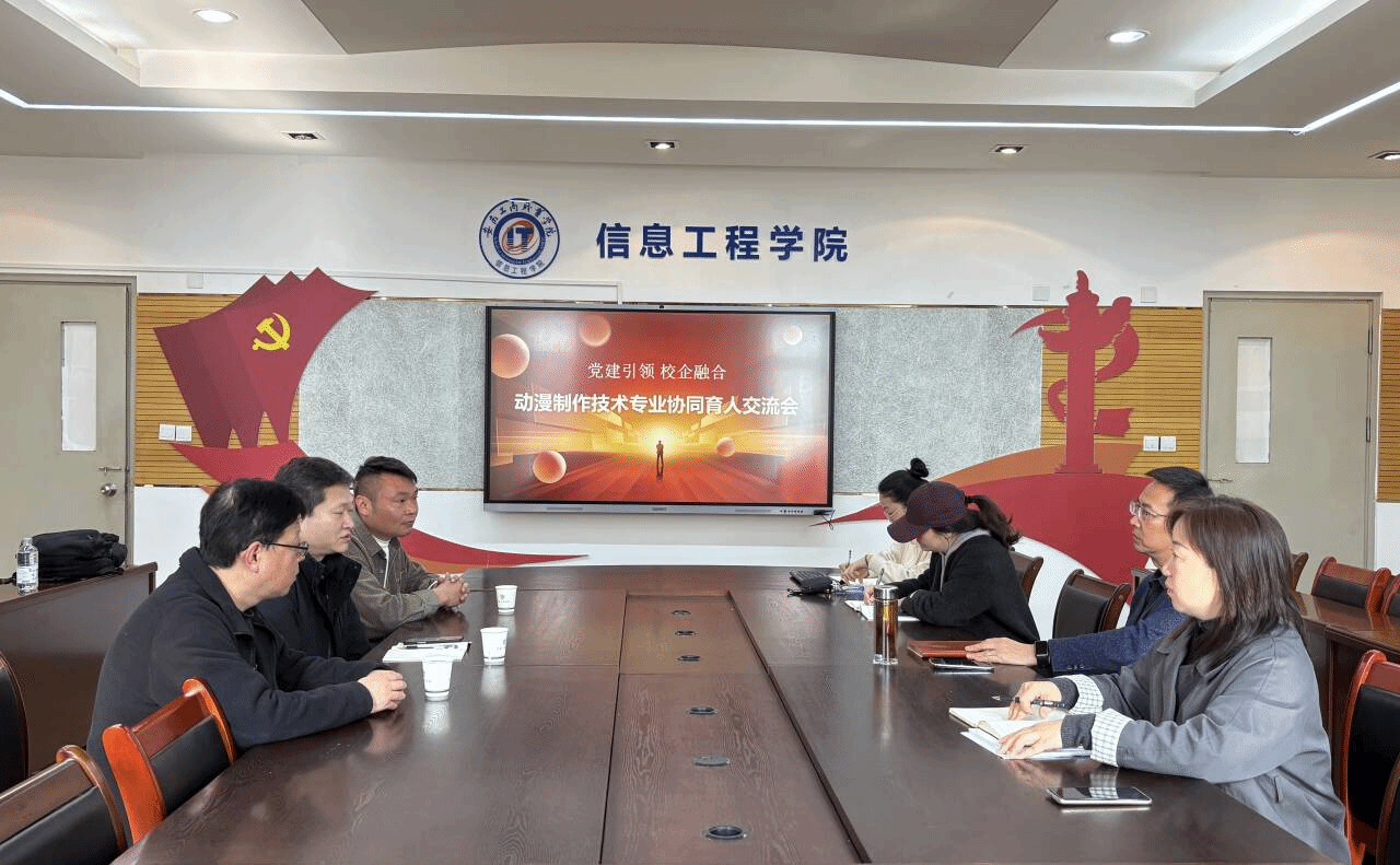 为深入推进全国党建工作样板支部建设,强化党建引领事业发展,推动党建与业务深度融合,近期,安徽工商职业学院信息工程学院动漫制作技术教研室党支部以“党建引领、校企融合”为主题,组织召开动漫制作技术专业协同育人交流会。高学数科科技有限公司代表柳洪波、天津龙奇教育负责人杨为一应邀参会,学院相关专业教师及支部党员代表共同参加研讨。