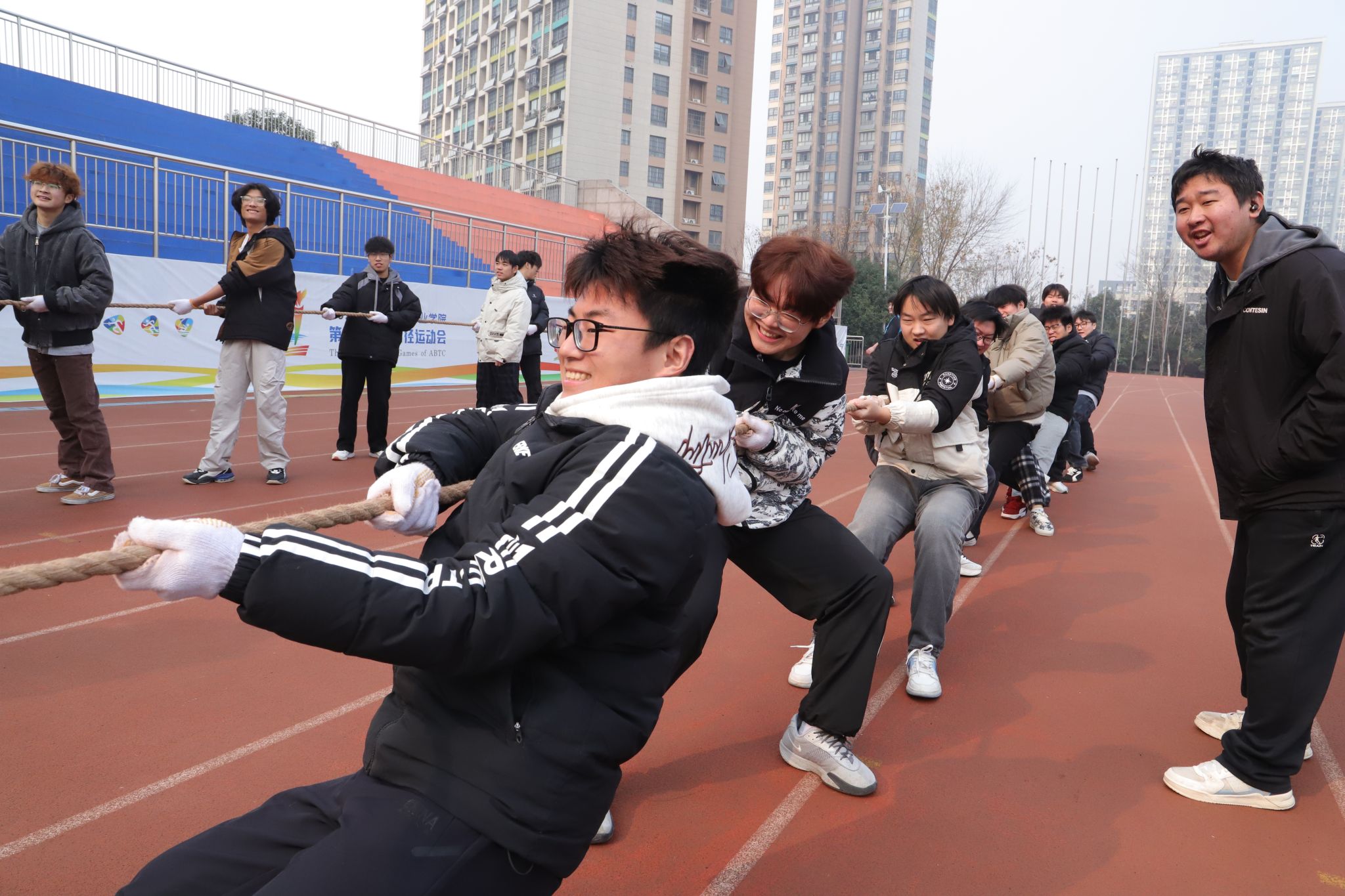冬日暖阳下拔河比赛现场人声鼎沸、热情如火,比赛现场,各班队伍精神抖擞、斗志昂扬,展现了青春的活力与团队的默契。无论是势均力敌的僵持,还是一鼓作气的胜利,每一场比赛都凝聚着同学们的汗水与智慧,也传递着“团结一心、奋力拼搏”的体育精神。经过为期两天的激烈鏖战,25机电一体化技术10班代表队最终凭借强大实力与出色团队协作,在欢呼声中勇夺本届比赛冠军,25智能网联汽车技术2班获得亚军,25智能网联汽车技术3班获得季军。