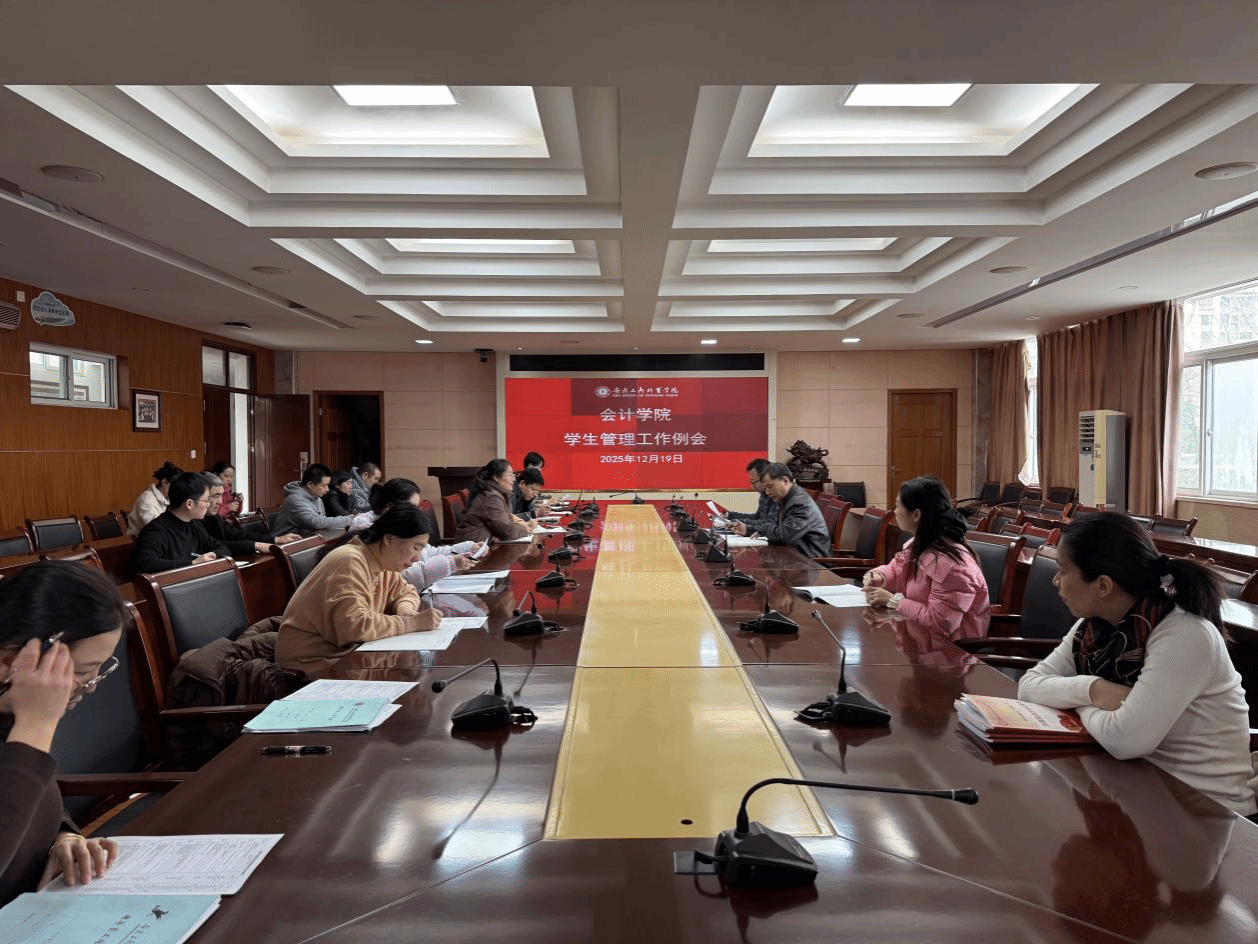 12月19日,会计学院在明德楼会计学院会议室召开12月学生管理工作例会,系统安排期末阶段学生教育、管理与服务重点工作。会计学院党总支副书记李峰、全体辅导员及学生科、教务科老师等参加会议,李峰主持会议。