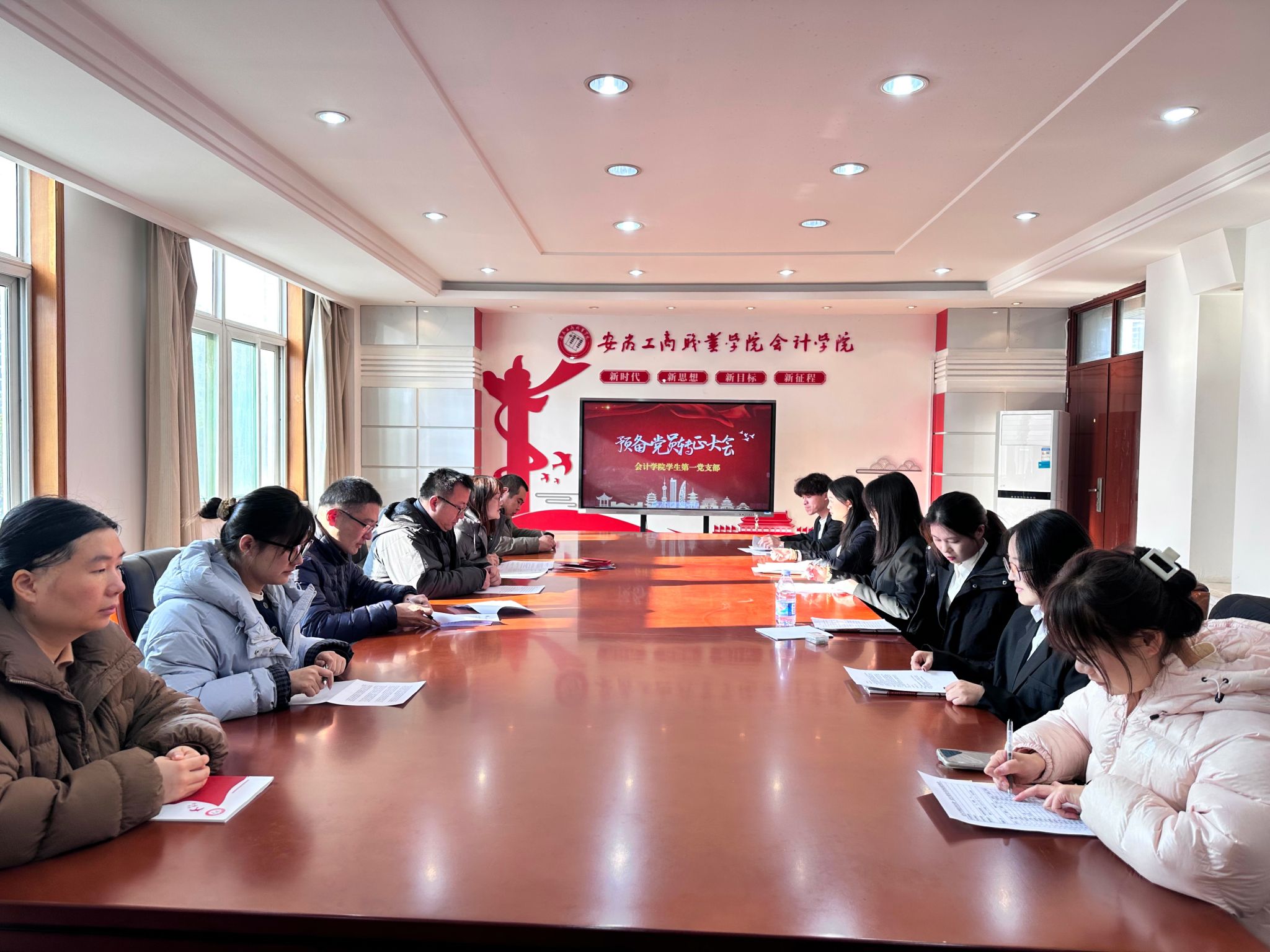 2025年12月27日,会计学院学生第一、第二、第三、第四党支部分别在明德楼党建会议室及二号会议室召开预备党员转正大会。各党支部书记主持会议,支部全体正式党员、预备党员参会。