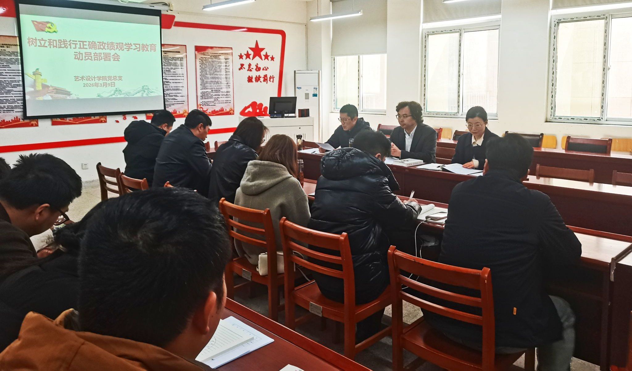 3月9日中午,艺术设计学院党总支在致知楼党员活动室组织召开树立和践行正确政绩观学习教育动员部署会。校党委委员、党委宣传统战部部长、艺术设计学院党总支书记孔成,艺术设计学院党总支副书记、院长魏芬,副书记张乐和党支部书记、教研室主任、部分党员参加会议。