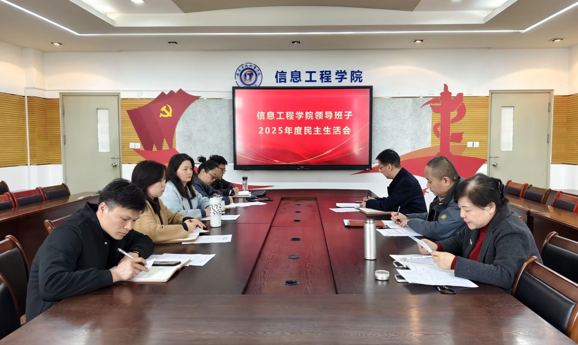 按照学校党委统一部署,近日,信息工程学院党总支召开2025年度民主生活会。党委委员、组织人事处处长刘浩到会指导工作。党总支书记张静雯主持会议并作表态发言,学院院长、党总支副书记范生万、副院长黄梅娟、党总支副书记陈夺及班子其他成员参加会议。