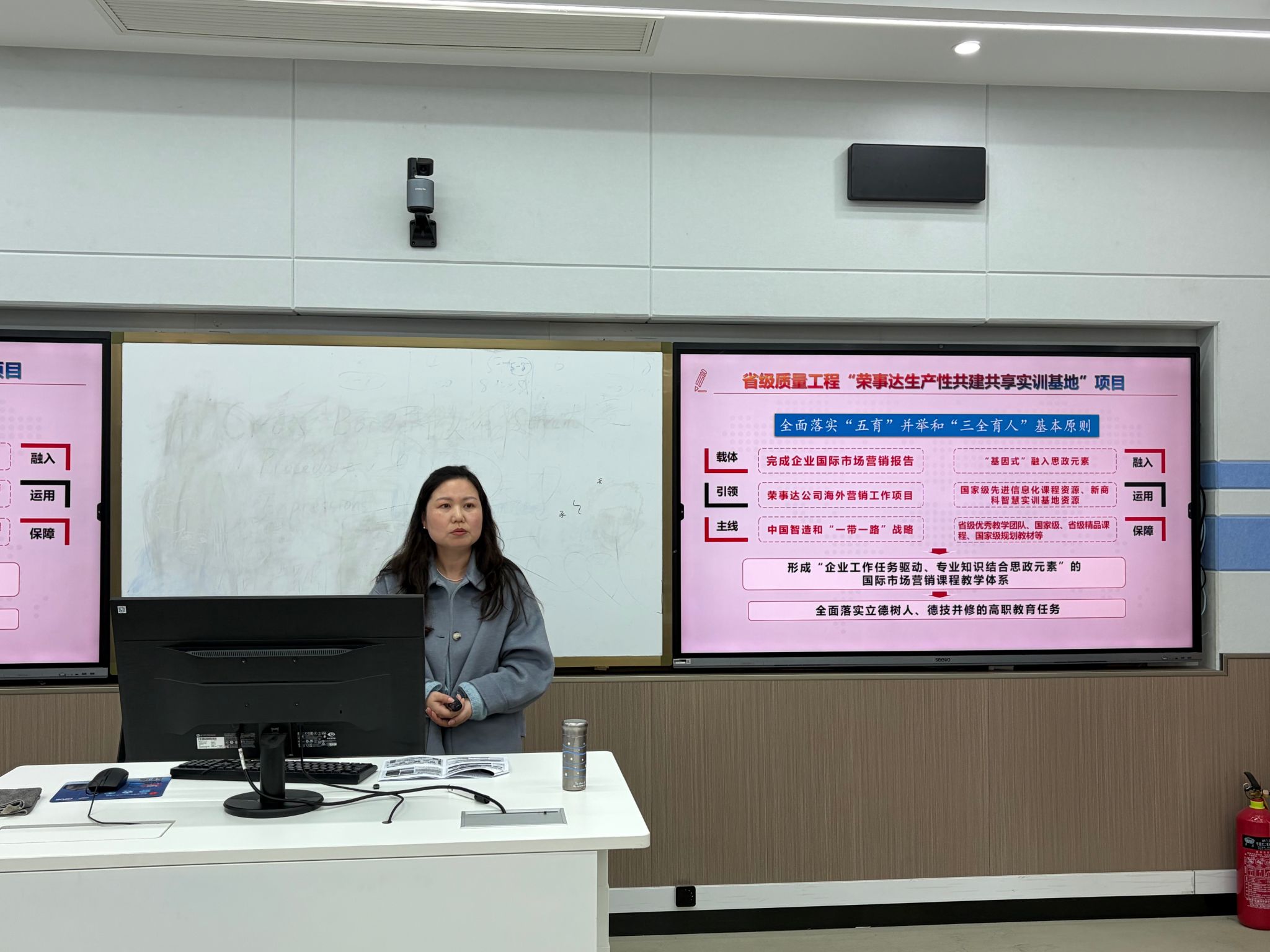本次大赛设置教学实施报告汇报和无生教学展示两个环节。来自学院各教研室的4个教学团队同台竞技,分别围绕《跨境电商实务》、《保险理论与实务》、《国际市场营销》、《商务英语翻译》等专业核心课程展开精彩教学展示。有的团队以真实产业项目驱动教学,将企业案例转化为教学任务;有的团队深度融合数字技术,利用大数据、AI辅助等手段提升课堂效能;还有的团队聚焦课程思政,在专业知识传授中自然融入价值引领。参赛教师准备充分,教学设计理念新颖,展现了扎实的教学基本功和灵活多样的教学方法,体现了经济贸易学院教师队伍的专业素养与创新活力。