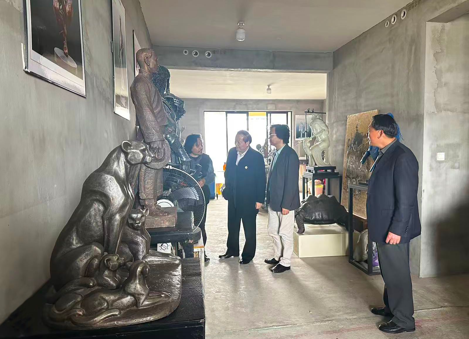在陆金的陪同下,孔成实地参观了企业创作工作室,深入了解企业的发展历程、艺术创作理念及生产经营情况。陆金介绍了其多年来在雕塑艺术领域的创作成果,其作品多次在国内外重要展览中斩获奖项,展现了深厚的艺术造诣和扎实的专业功底。