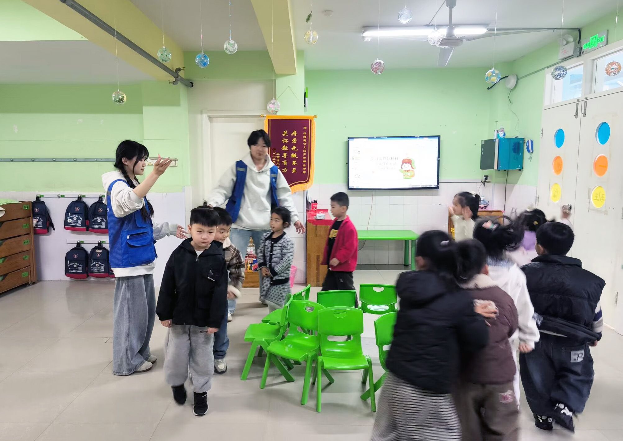 在“爱心承诺”跟读环节,志愿者们带领小朋友们逐字逐句朗读:“我承诺:做一个善良的孩子,主动帮助别人,从现在开始,做一个合格的小雷锋!”整齐响亮的童声回荡在教室中,通过仪式感强的集体承诺,进一步加深了孩子们对雷锋精神的情感认同。此外,志愿者们还组织了趣味互动游戏。欢快的音乐声中,小朋友们积极参与、默契配合,现场欢声笑语不断。孩子们在游戏互动中增强了合作意识,体悟分享与互助的快乐。