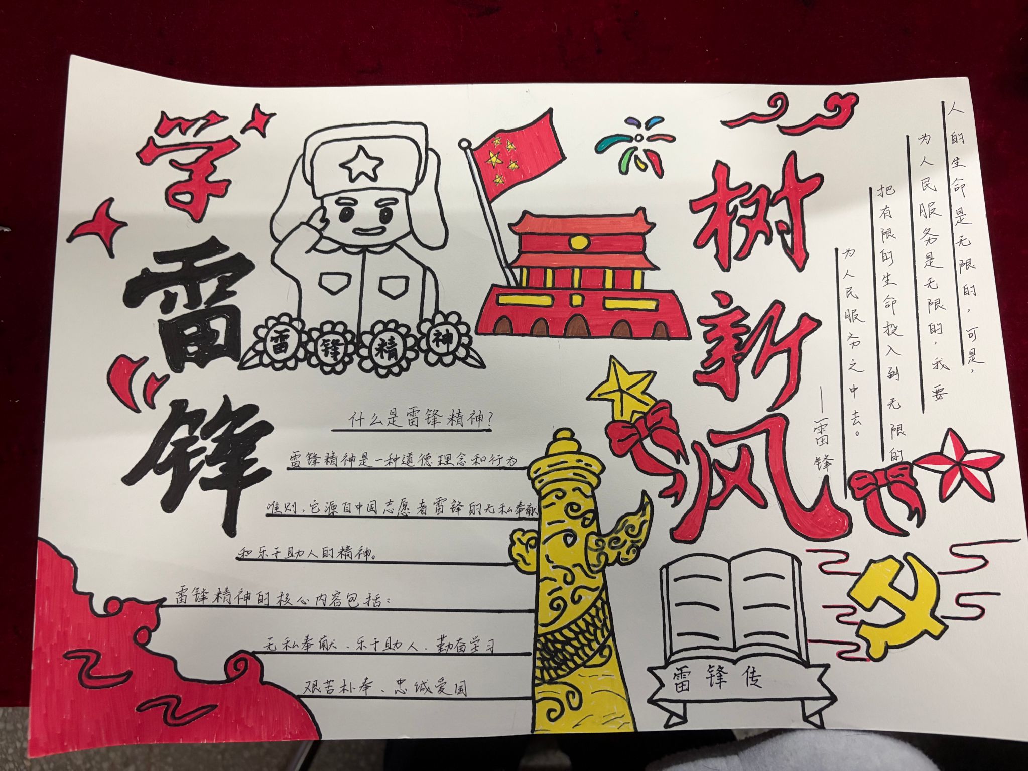 为深入学习贯彻雷锋精神,引导青年学子将奉献精神内化于心、外化于行,近日,智能制造与汽车学院以“雷锋月”为契机,成功举办雷锋精神手绘海报活动。