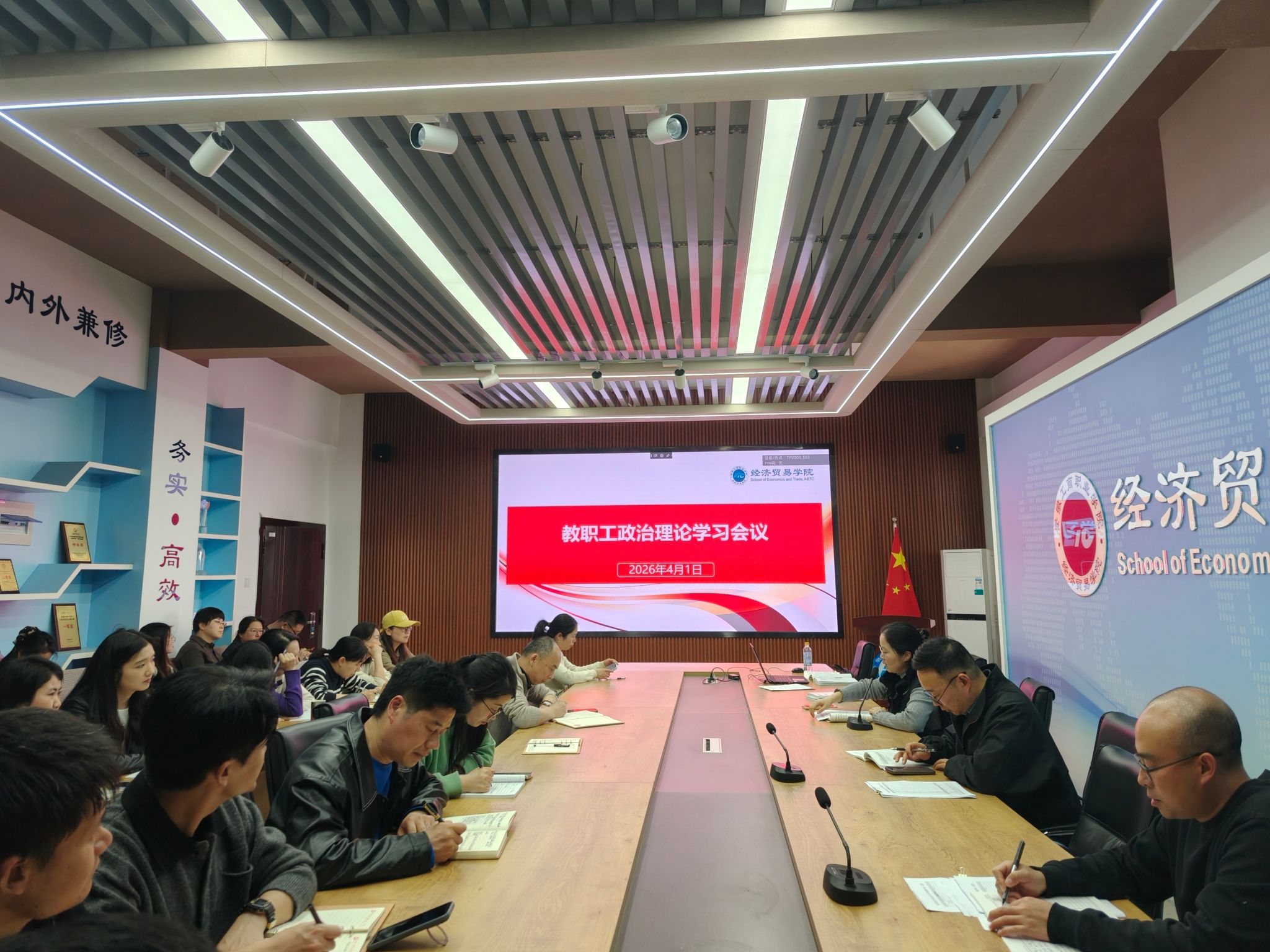4月1日,经济贸易学院党总支在5楼教师能力提升中心召开4月份教职工政治理论学习会议,集体学习习近平总书记在参加江苏代表团审议时、在中共中央政治局第二十四次集体学习时的重要讲话精神,学习《习近平关于树立和践行正确政绩观论述摘编》的内容,并组织观看警示教育专题片。会议由党总支副书记马莉主持,全体教职工参加会议。