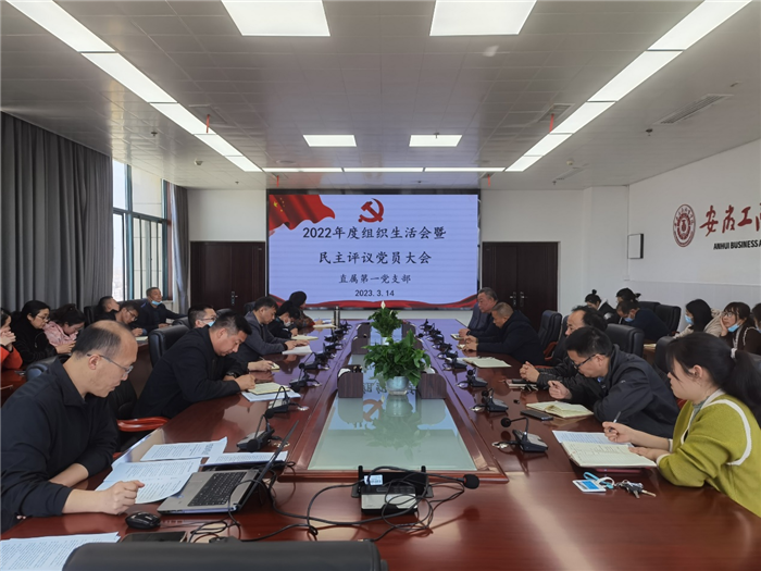 3月14日下午,直属第一党支部在综合楼3号会议室召开2022年度组织生活会暨民主评议党员大会。大会由支部书记耿艳军主持,支部全体党员参加。