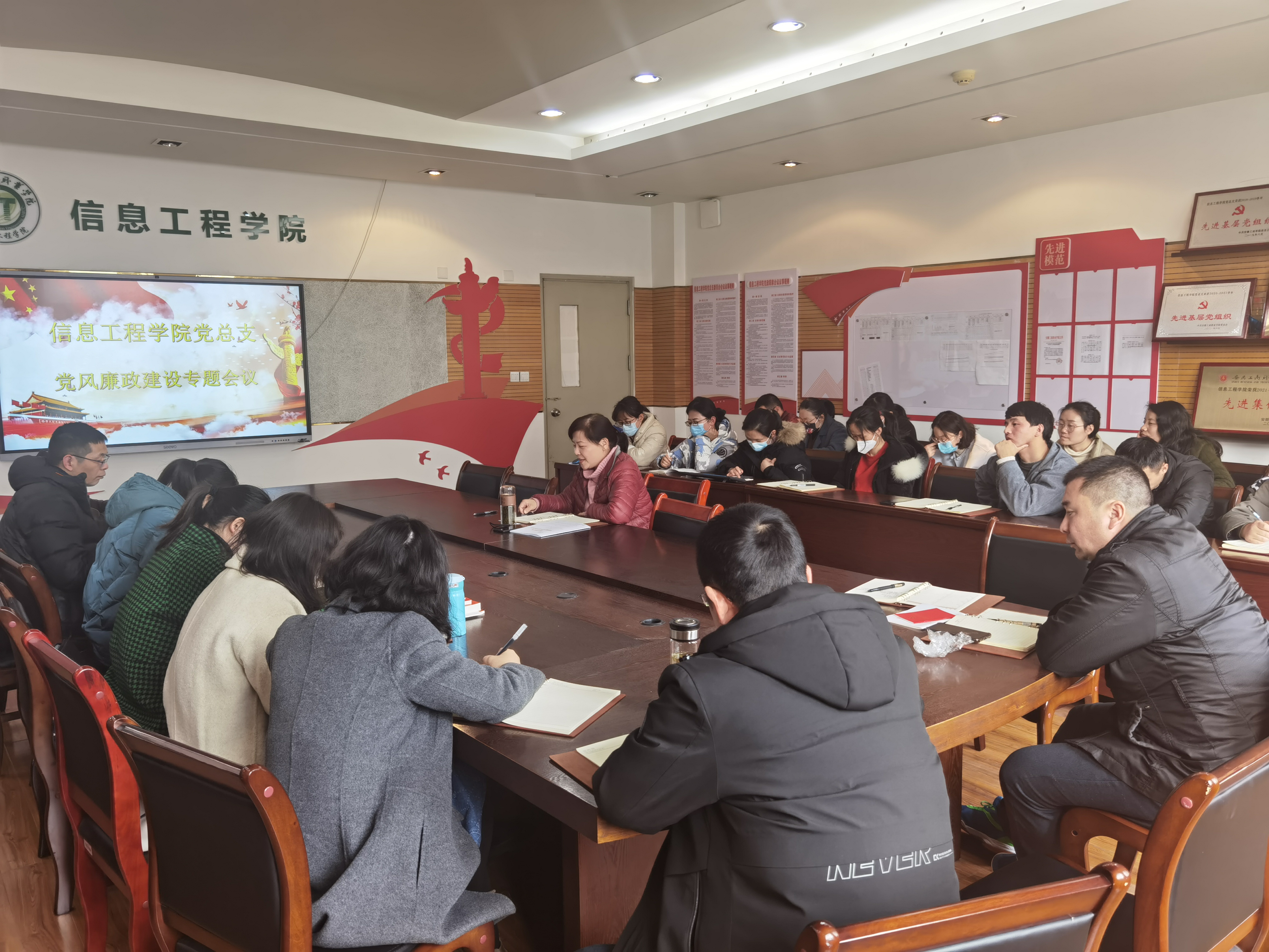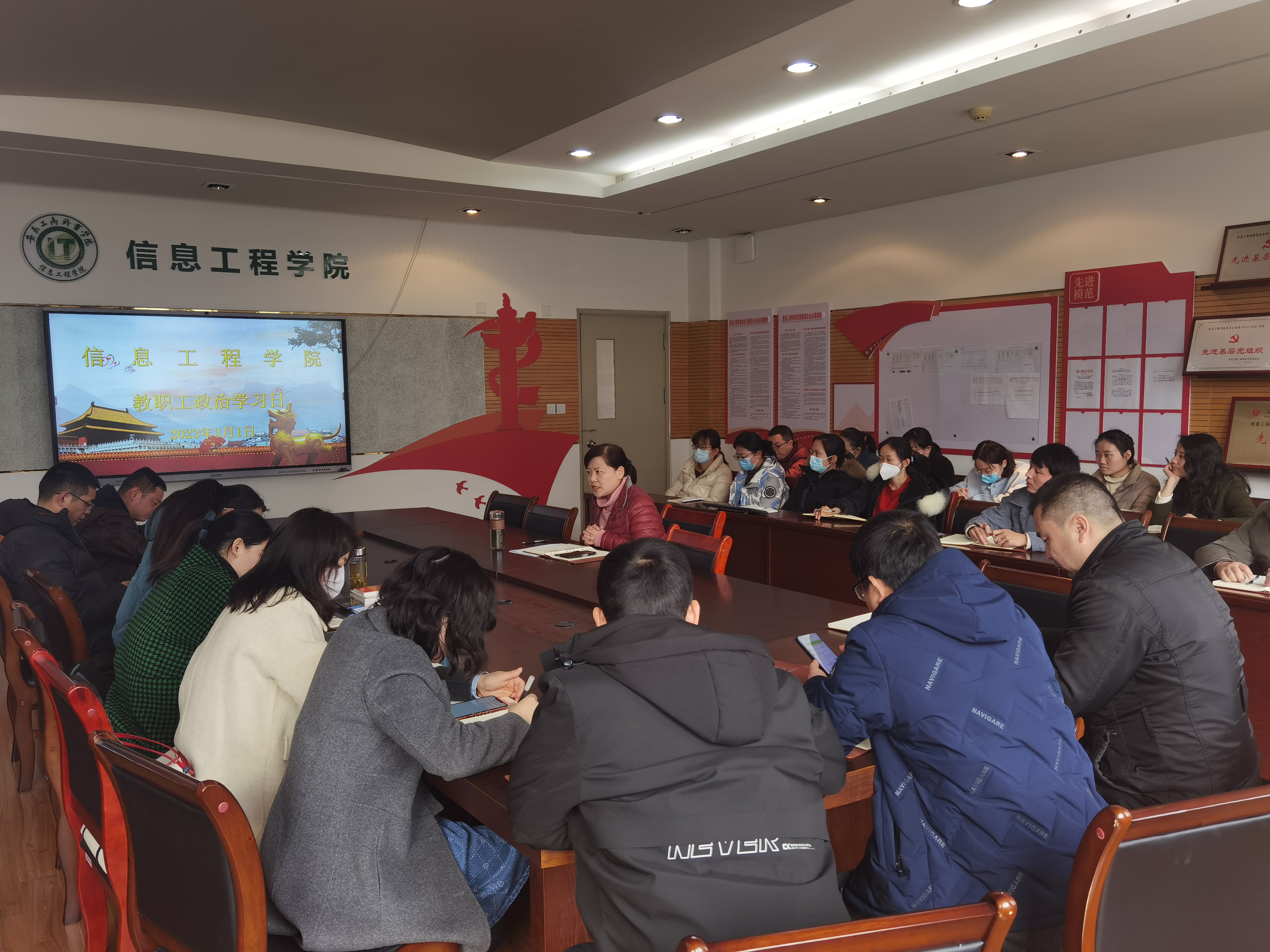 根据学校党委的统一部署,信息工程学院党总支于3月1日下午在党员活动室开展了新学期第一次全体教职工政治学习日活动暨加强师德师风建设专题会议,学院全体教职工参加了本次学习,活动由党总支书记张静雯主持。